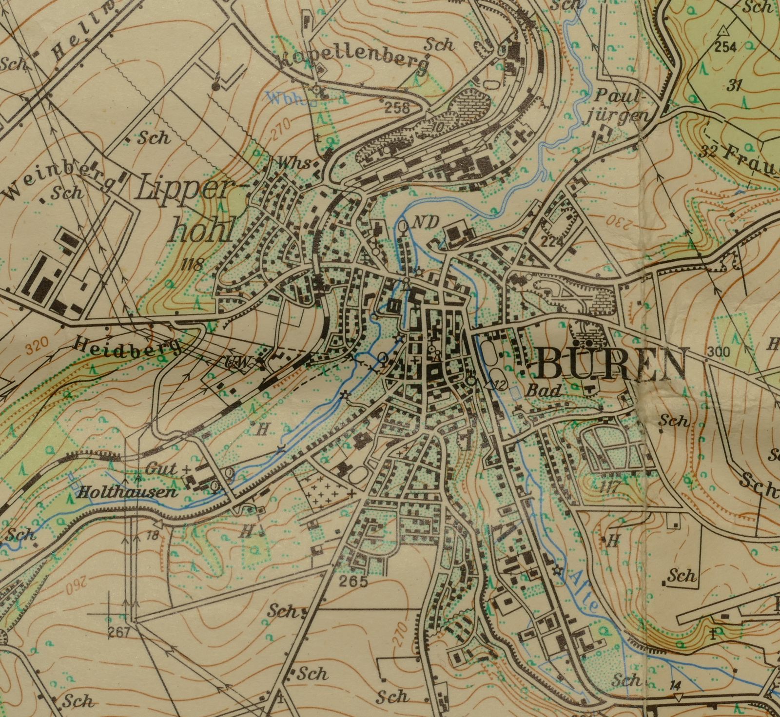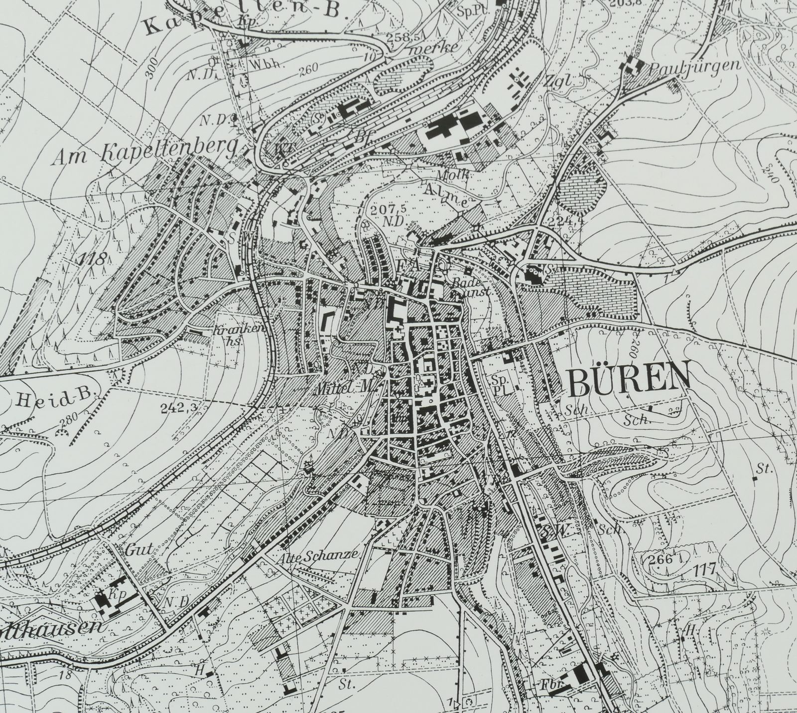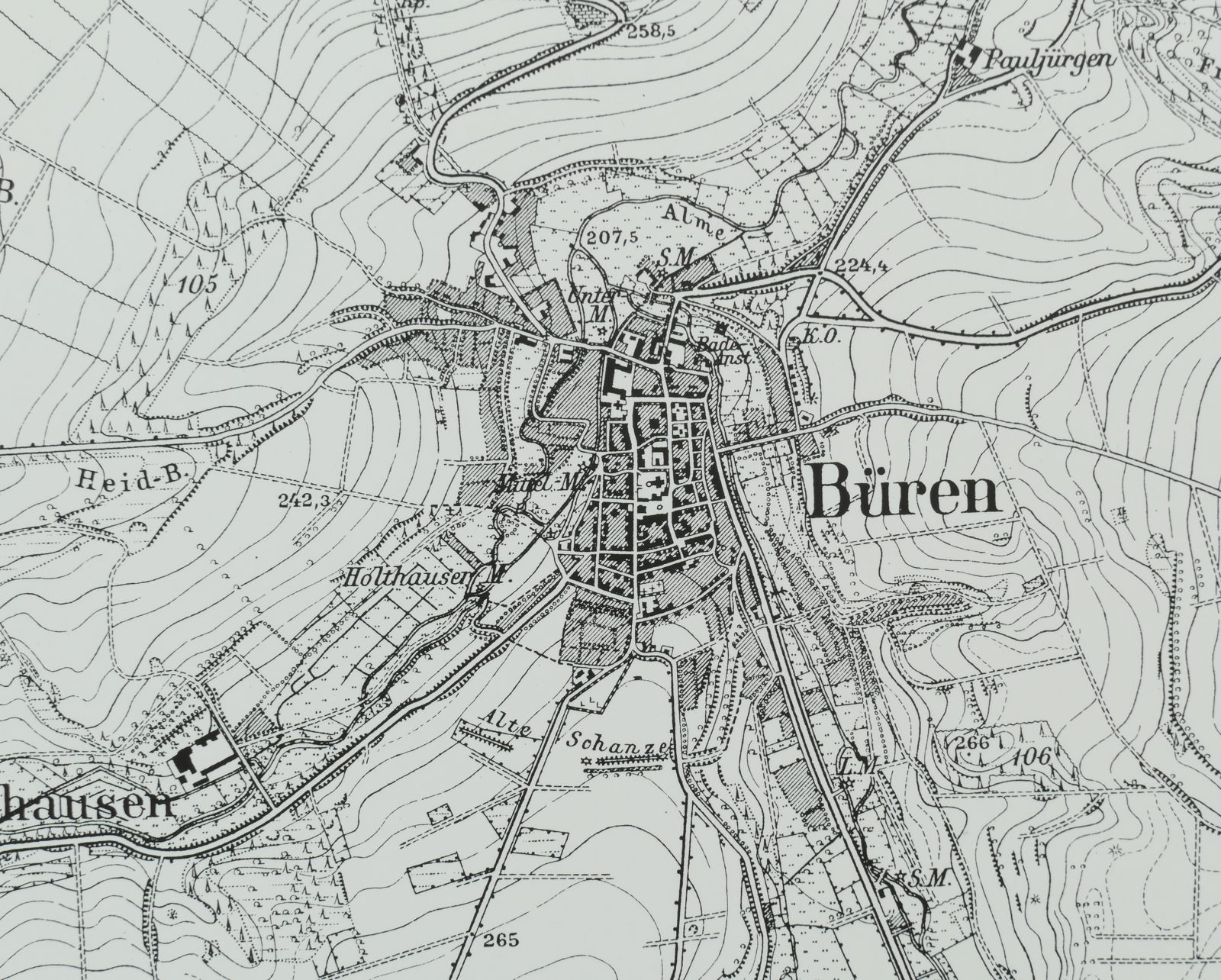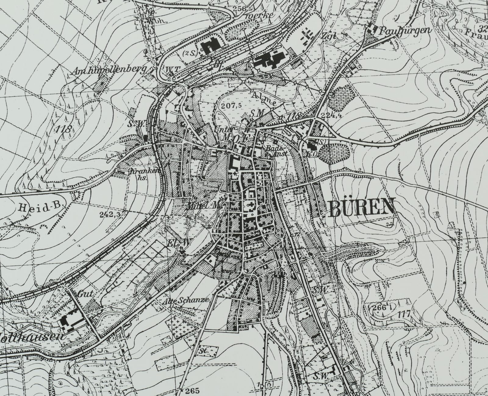 2. Motive der Stadt Büren von früher (ca. ab 1900) bis heute darstellen.