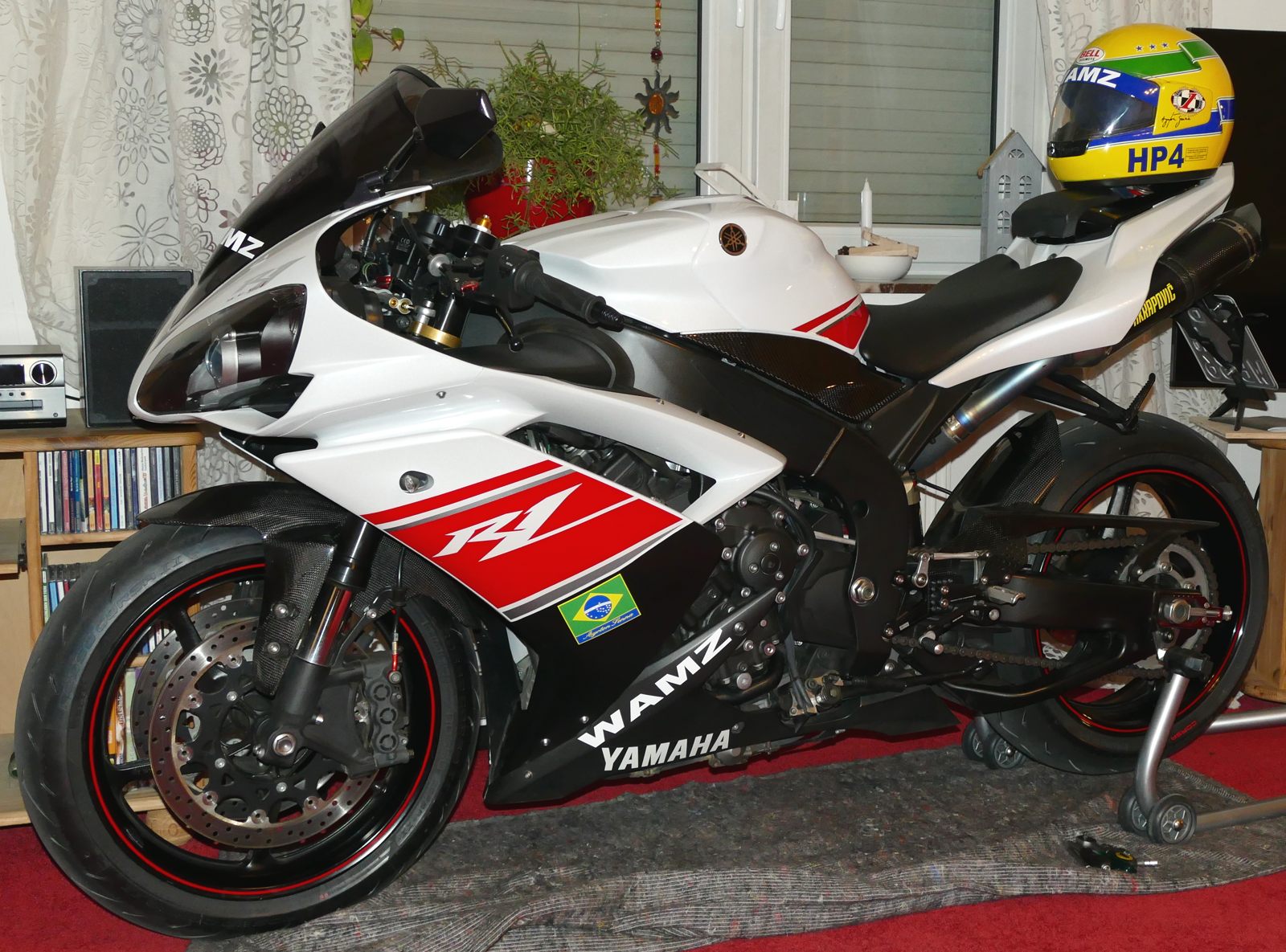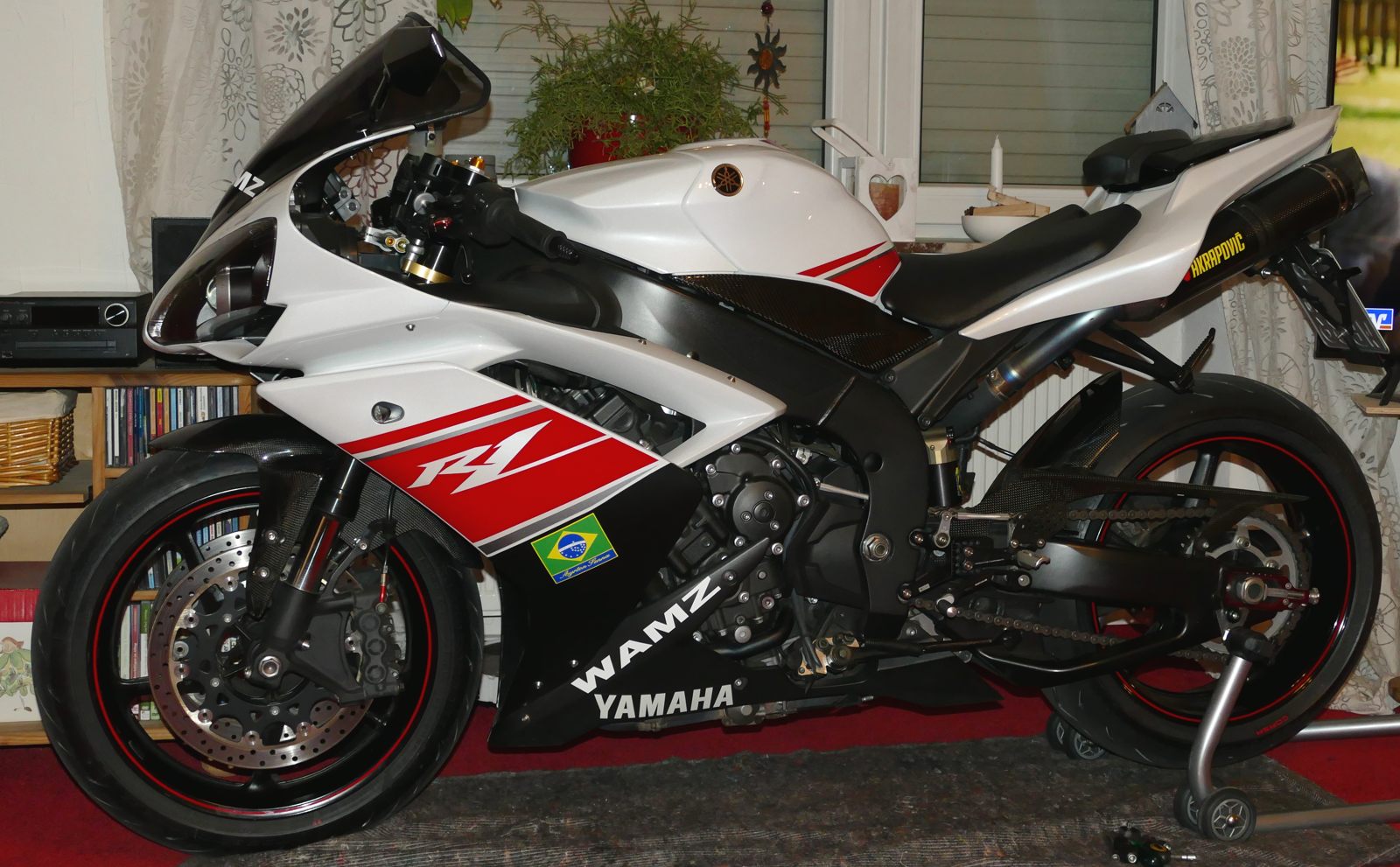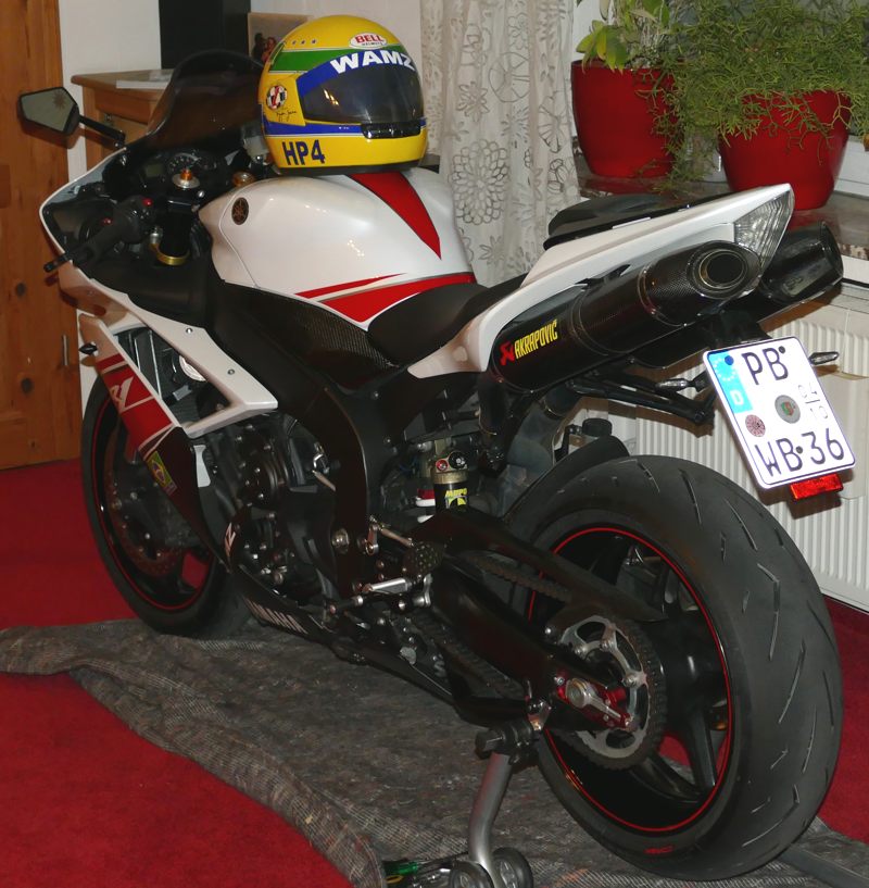 In diesem Jahr möchte ich meine schöne Motorradsammlung nochmal um eine echte Lieblingsmaschine ergänzen. Es ist eine Yamaha, und zwar eine YZF R1 RN19. Dieses schöne Modell ist meine dritte R1 und hat ebenfalls noch keinen elektronischen Firlefanz, der dich nerven kann, allerdings auch kein ABS. D. h., keine Traktionskontrolle, keine Mappings etc. Immerhin bietet sie eine Anti-Hopping-Kupplung. Die gebrauchte Maschine, die ich erst in ca. einer Woche holen werde, hat eine ganze Menge an schönen Extras und glänzt mit einer fantastischen Optik, ist fast neuwertig. Ich weiß natürlich, dass das Aussehen immer ein subjektiver Eindruck ist, den ich als Yamaha-Fan auch ein bisschen durch die rosa-rote Brille sehe. Ich freue mich schon sehr auf die RN19, und sie wird wie einige ihrer Vorgänger erst einmal in unserem Wohnzimmer Platz nehmen. Dort werde ich mindestens eine Nacht neben ihr verbringen. Verrückter Mensch, oder!?