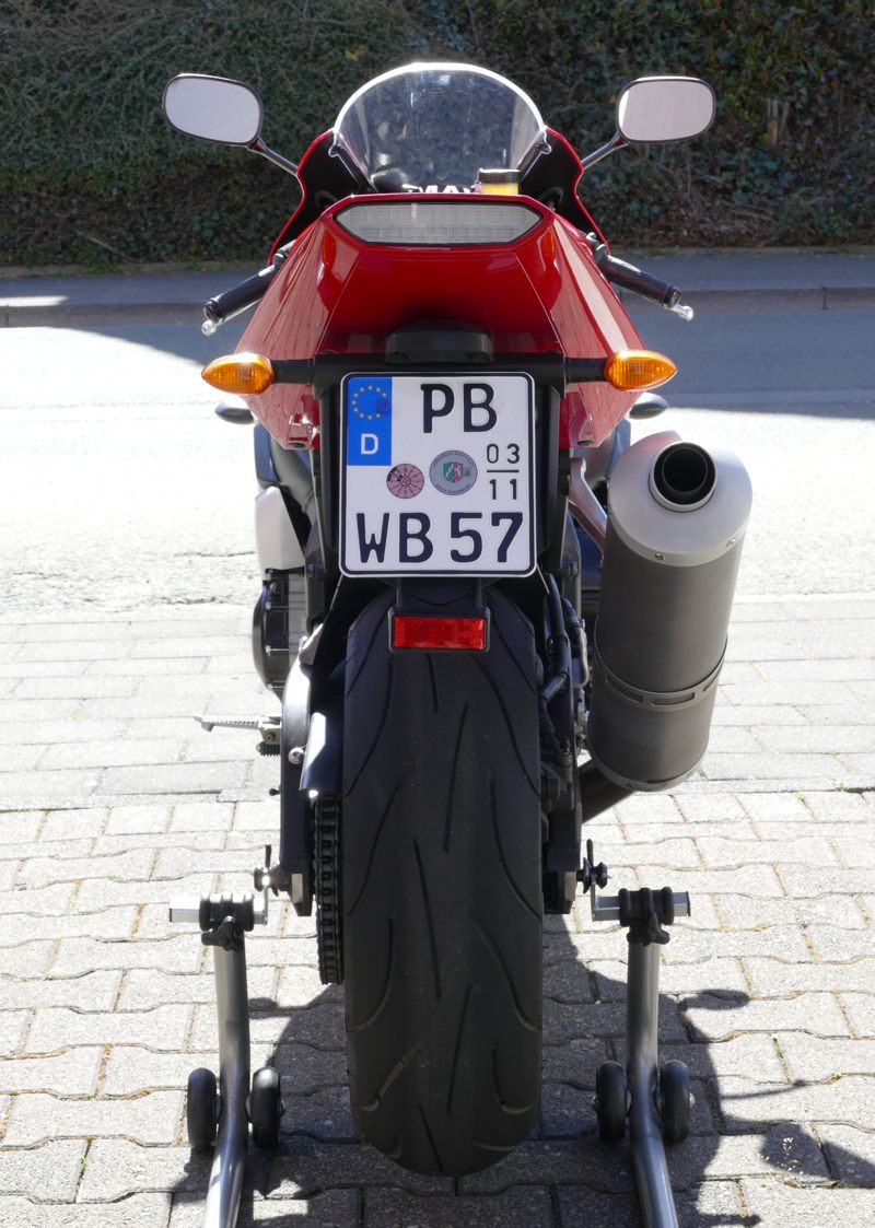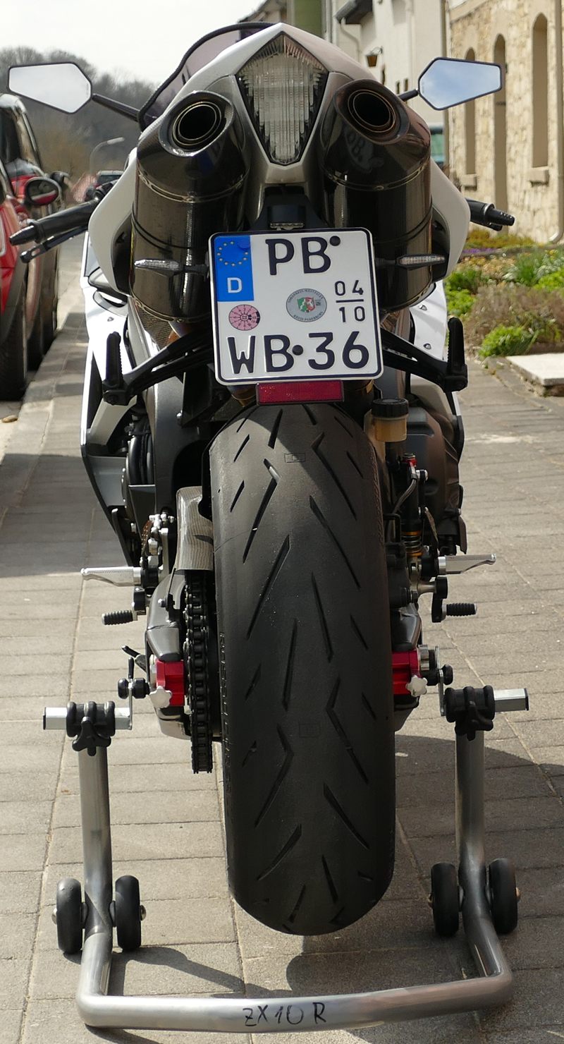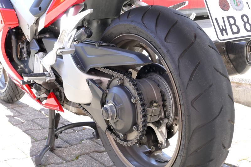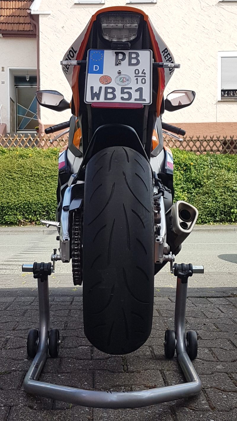1. die Reifen waren um die 8 Jahre alt. Nun ist sie mit neuen Pirelli Diablo Rosso Corsa II besohlt, die ich selbst gewuchtet habe.