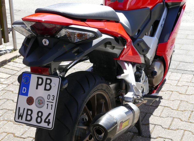 3. Die Kennzeichenhalterung entspricht nicht der STVZO; das Kennzeichen muss steiler stehen (max. 30° Neigung sind zulässig. Leider lässt sich die Neigung bei diesem verbauten System nicht variieren. Ich habe es geändert.