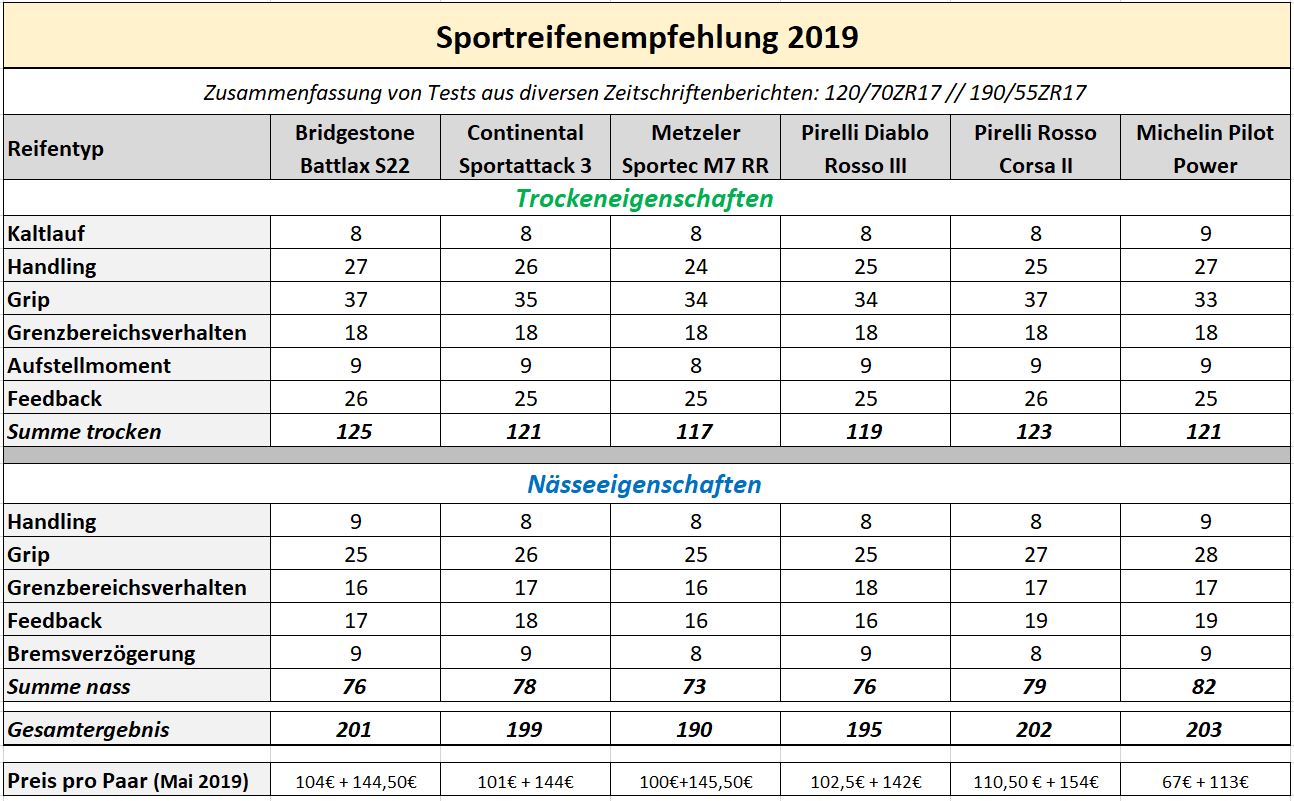 Meine Reifenempfehlung Sportreifen 2019