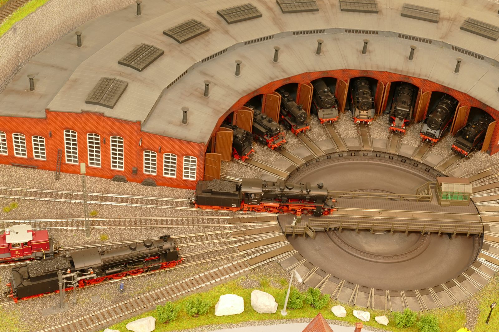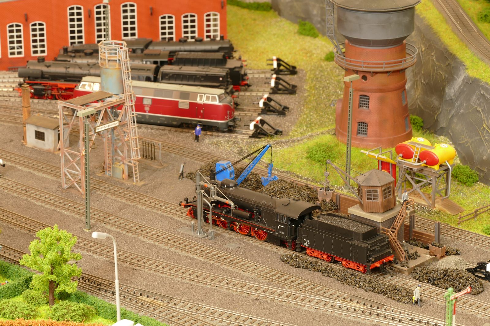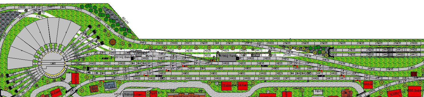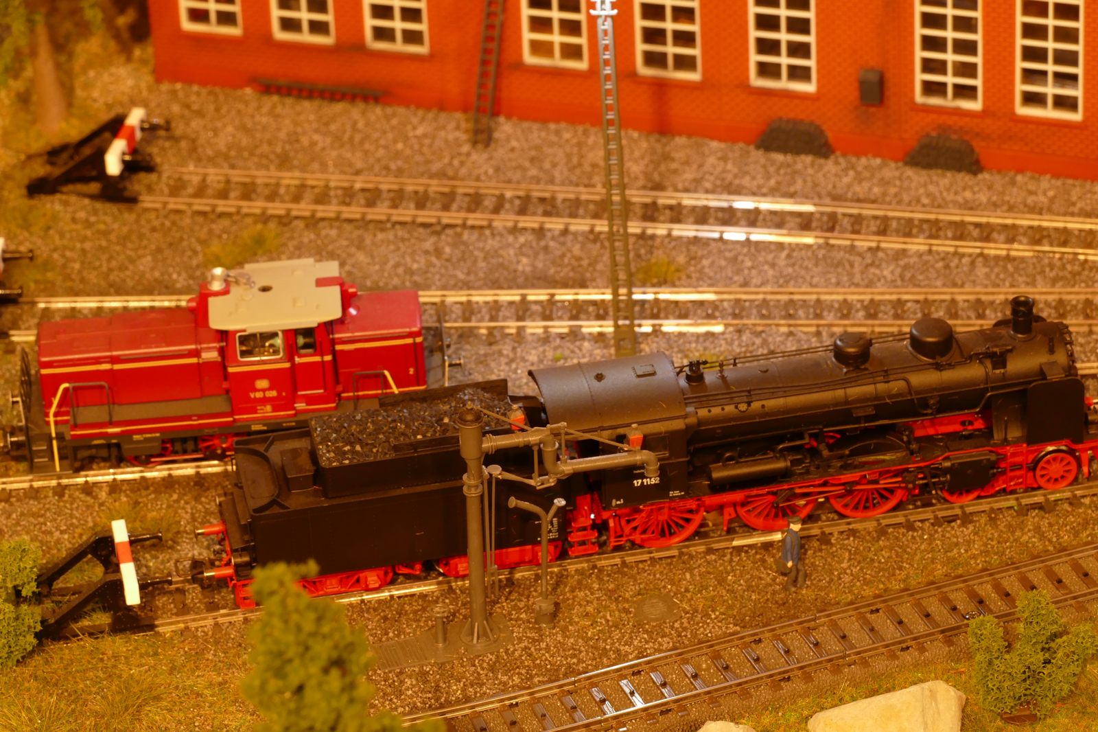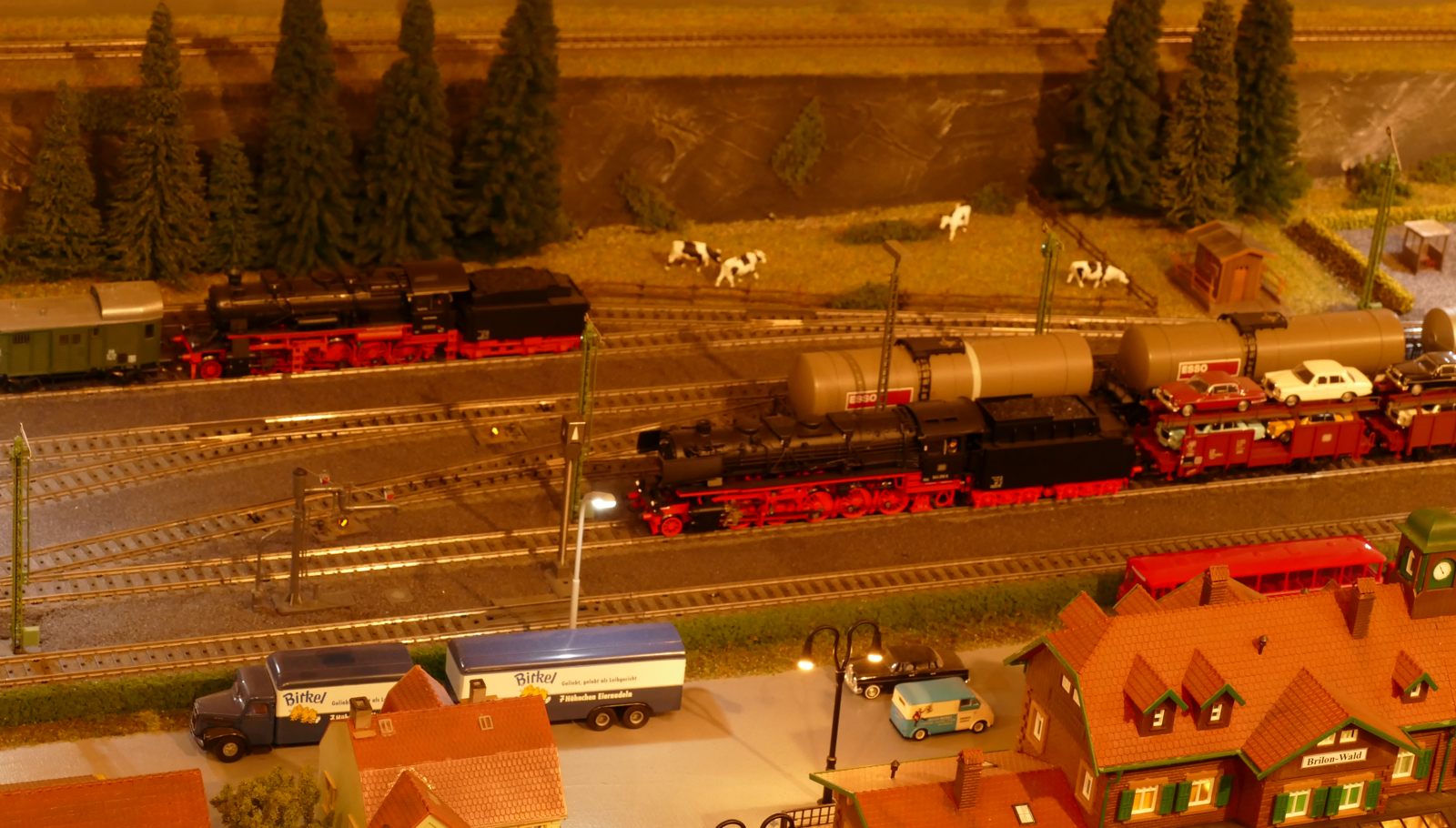 Die Güteranlagen in Brilon-Wald sind nicht besonders ausgedehnt und vom Bahnbetriebswerk nicht direkt zu trennen. Immerhin findet sich so ziemlich alles, was man zur Lokbehandlung der 1950er und 1960er Jahre benötigt, vor Ort. Bekohlung, Besandung, Tankstellen für Öl und Diesel, Wasserkräne mit zugehörigem Wasserturm. Neben 4 parallel verlaufenden Gleisen gibt es einige Abstellgleise sowie Gleise als Zufahrt zur Drehscheibe. Das Bw bietet Platz für 17 Lokomotiven, davon 9 im Lokschuppen. Alle 17 Gleise sind an die 26m-Drehscheibe angeschlossen. Eine Zufahrt führt direkt auf das Bahnhofsgelände (im Bild unten links).