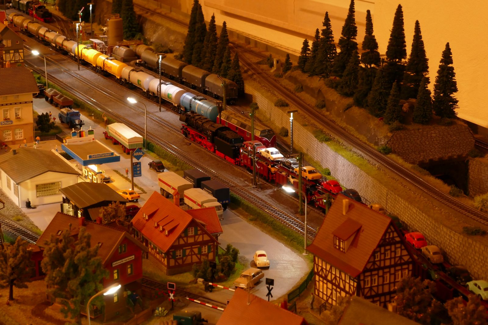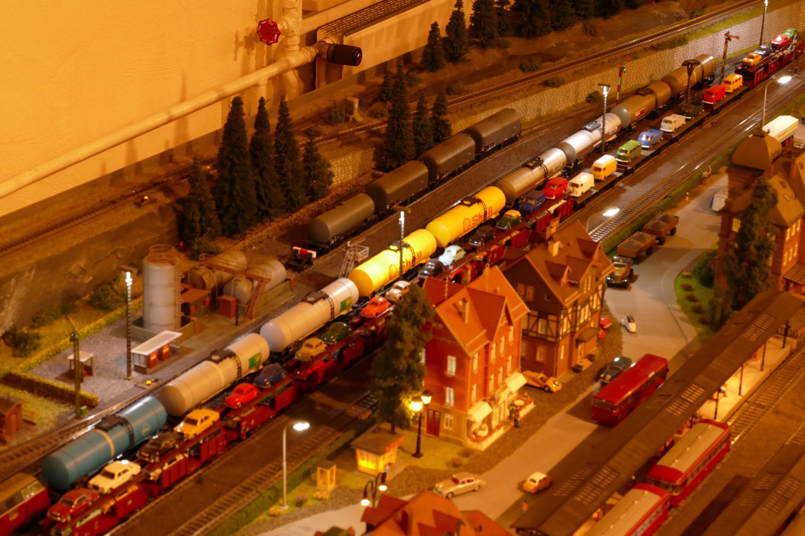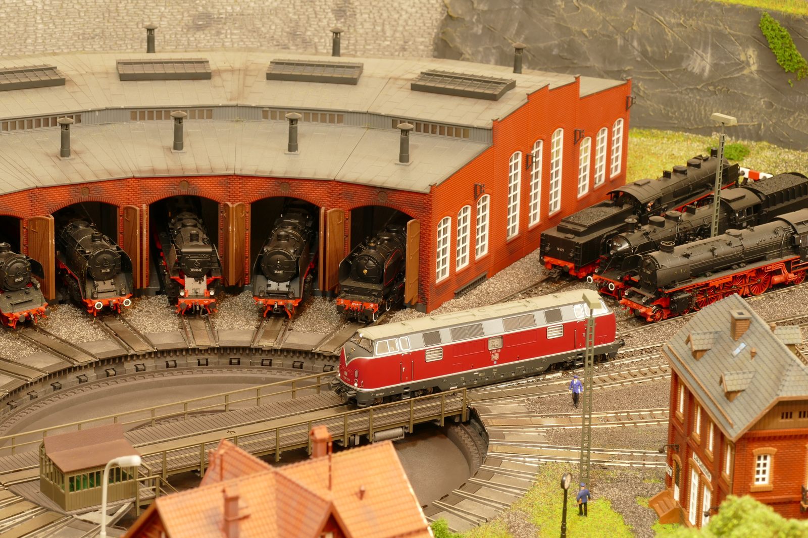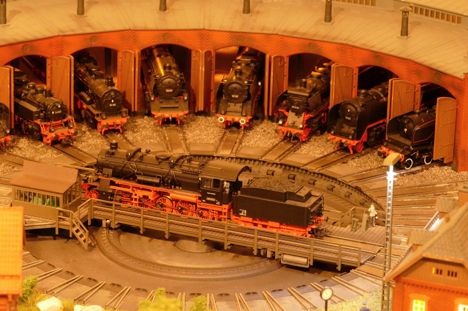 Die Güteranlagen in Brilon-Wald sind nicht besonders ausgedehnt und vom Bahnbetriebswerk nicht direkt zu trennen. Immerhin findet sich so ziemlich alles, was man zur Lokbehandlung der 1950er und 1960er Jahre benötigt, vor Ort. Bekohlung, Besandung, Tankstellen für Öl und Diesel, Wasserkräne mit zugehörigem Wasserturm. Neben 4 parallel verlaufenden Gleisen gibt es einige Abstellgleise sowie Gleise als Zufahrt zur Drehscheibe. Das Bw bietet Platz für 17 Lokomotiven, davon 9 im Lokschuppen. Alle 17 Gleise sind an die 26m-Drehscheibe angeschlossen. Eine Zufahrt führt direkt auf das Bahnhofsgelände (im Bild unten links).