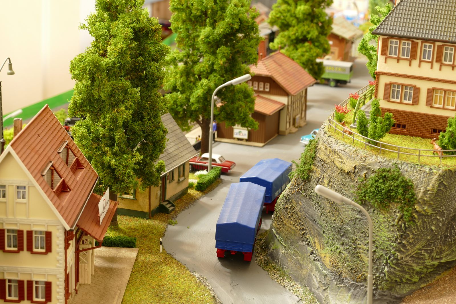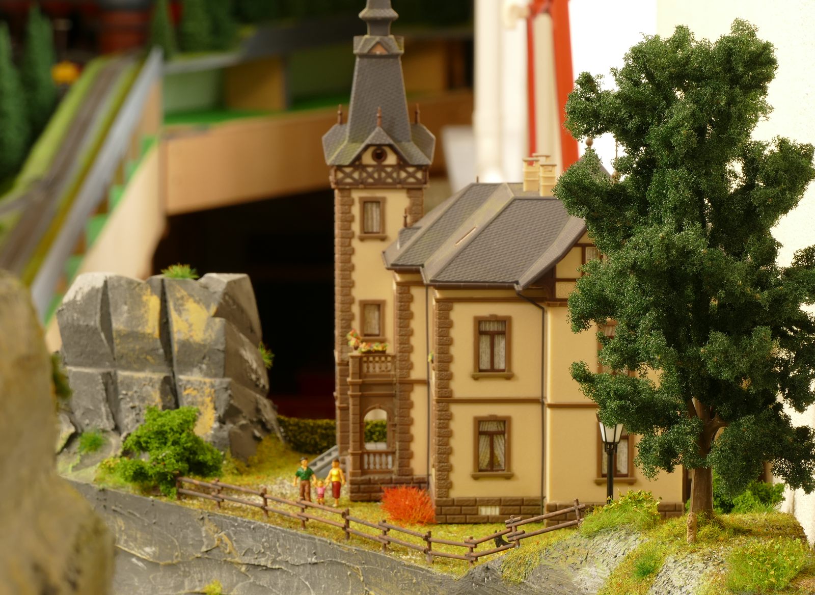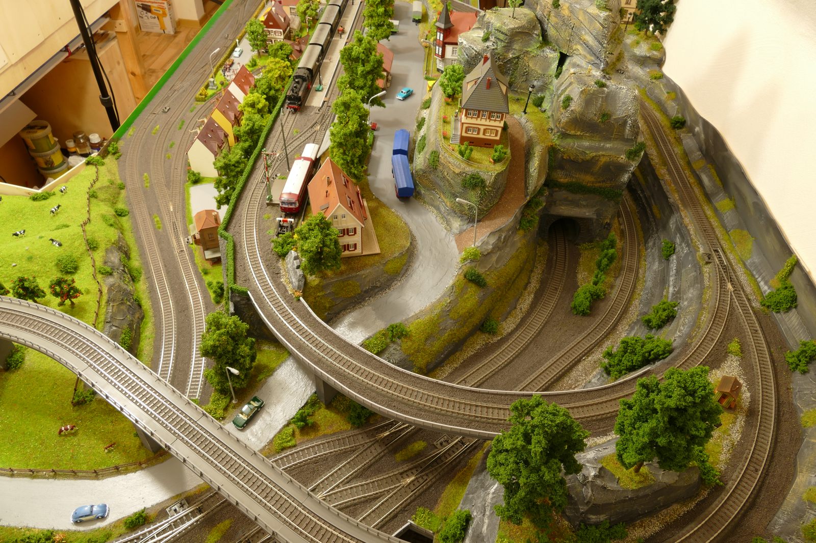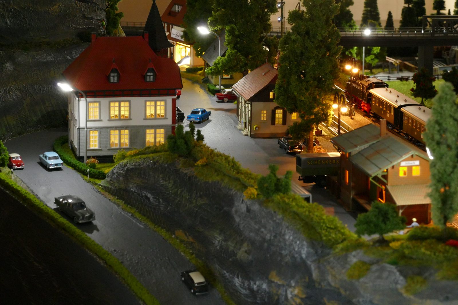Der kleine Ort Silbach liegt erhöht auf meiner Anlage. Die Gebäude liegen ca. 20 bis 35cm über der Hauptebene. Interessant sind der Berg mit den Felsen, die bei Touristen und Bergsteigern beliebt sind. Davon profitieren auch die Dorfbäckerei mit angeschlossenem Cafe und die Metzgerei. Ein kleiner Kopfbahnhof unterstützt die Mobilität und Versorgung bzw. den Warenaustusch des Ortes im Sauerland.
