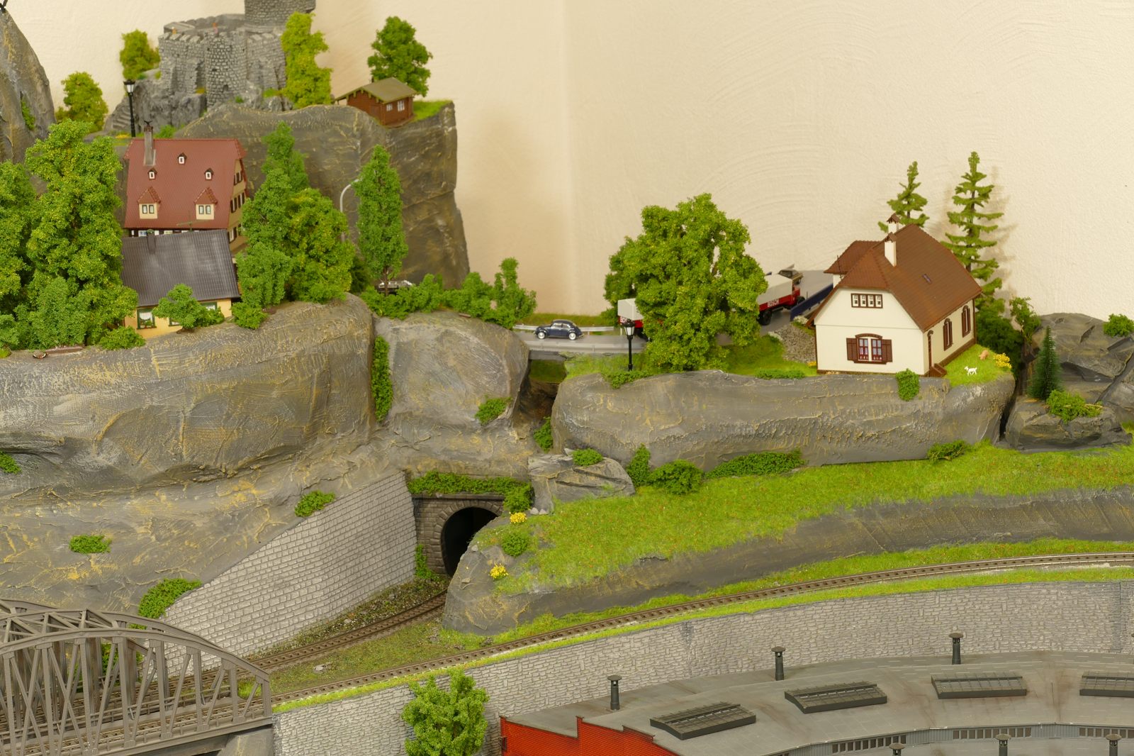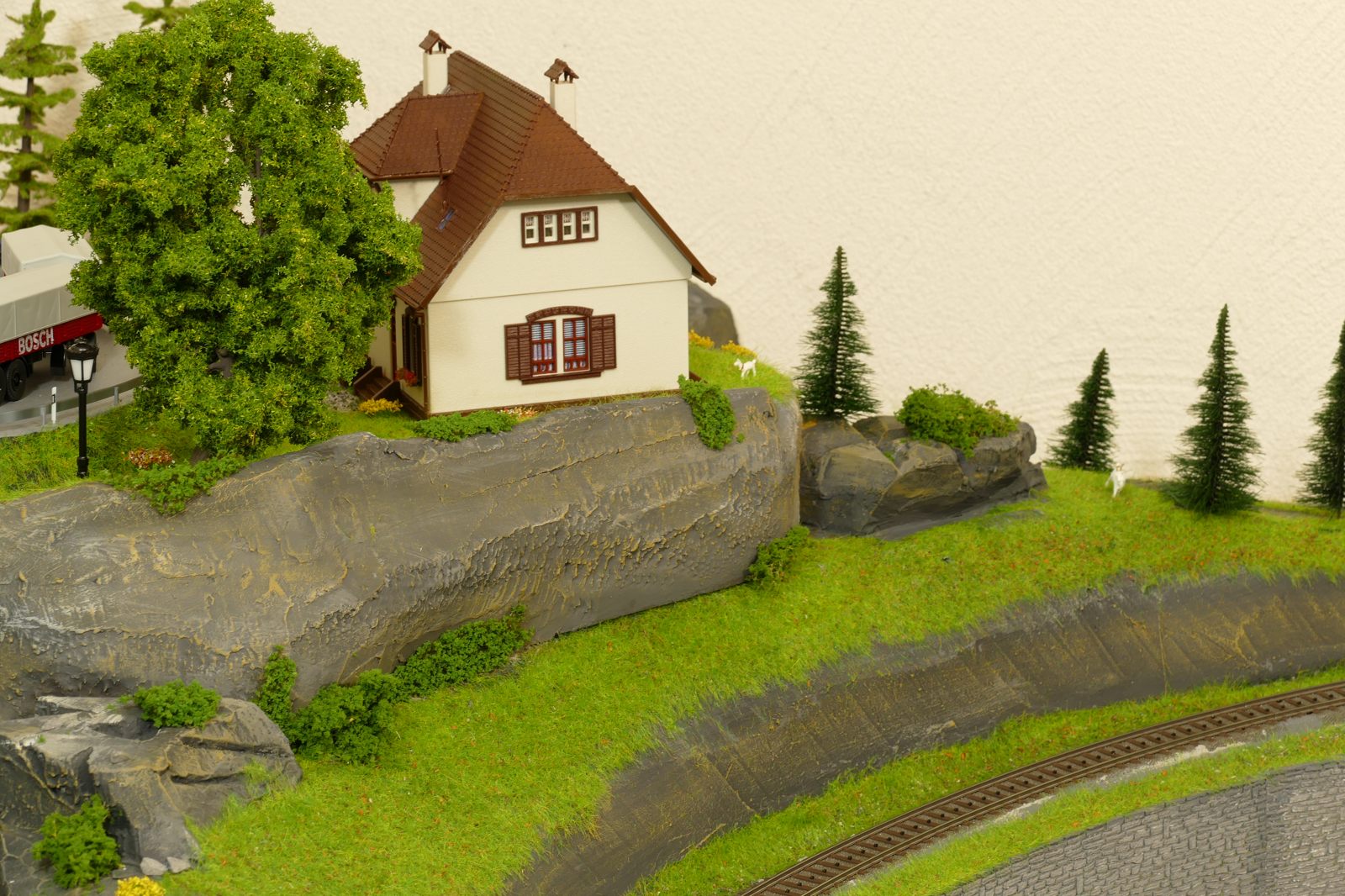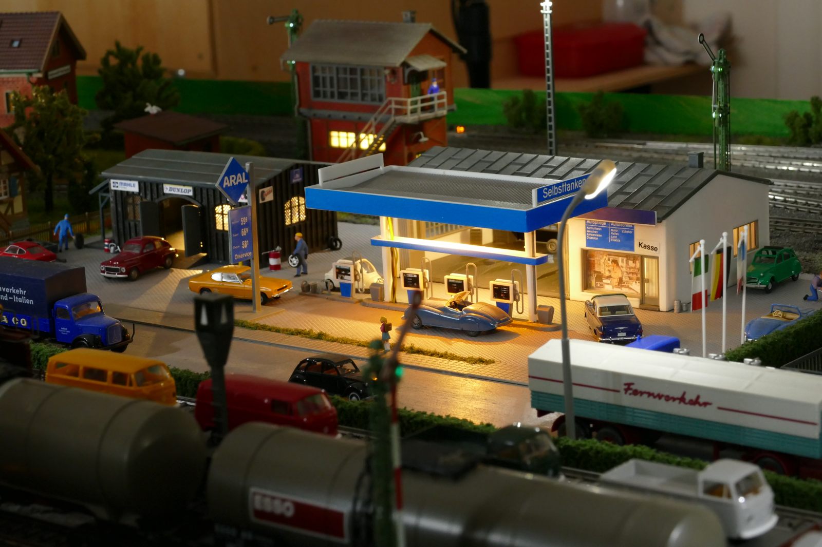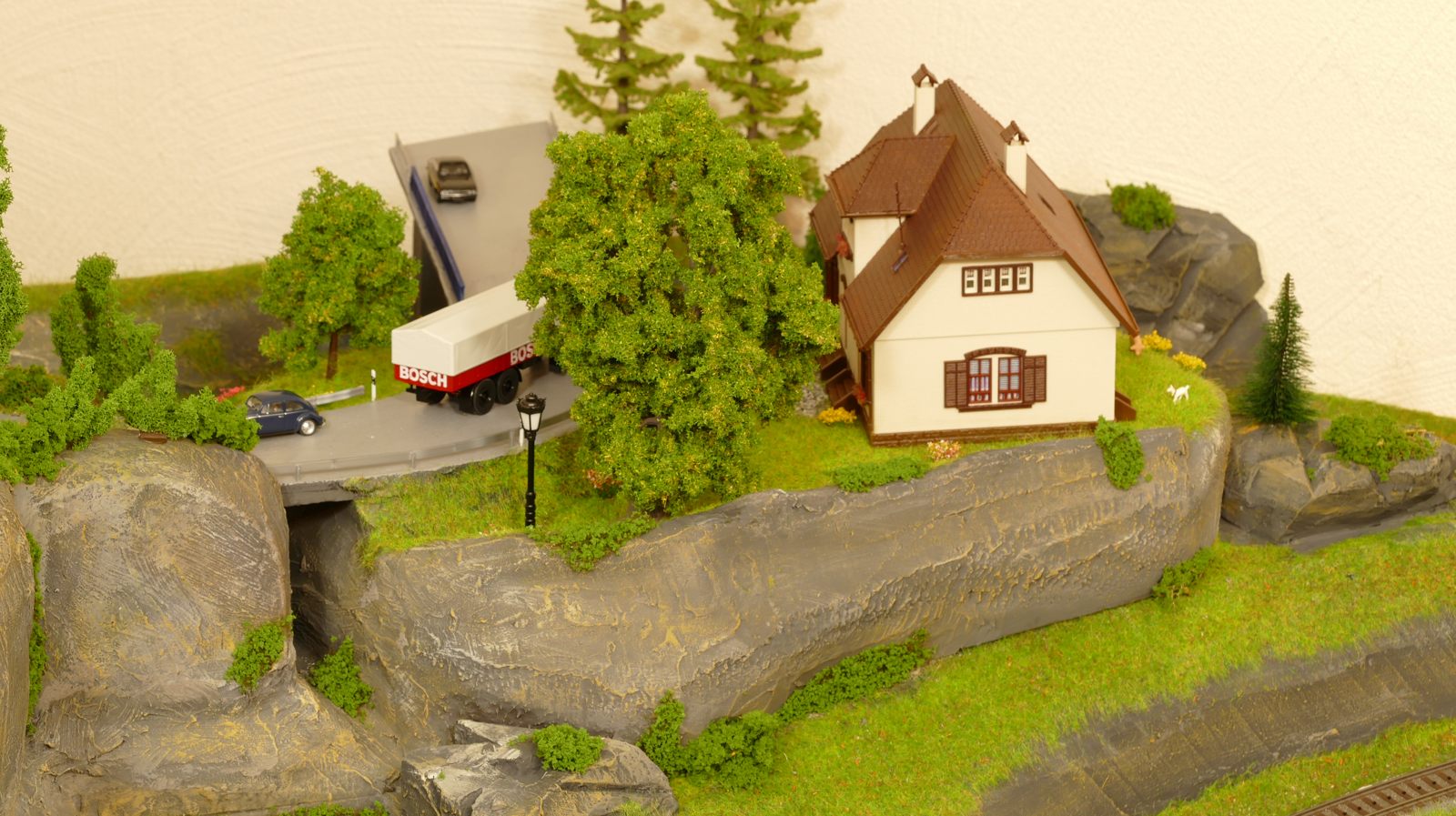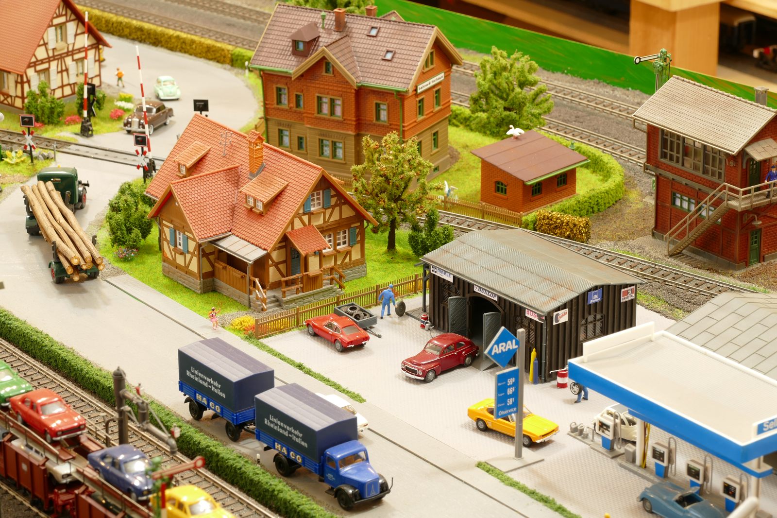 Die Stadt Brilon-Wald ist der Mittelpunkt meiner Modelleisenbahnanlage. Sie erstreckt sich hauptsächlich entlang der Bahnhofstraße, breitet sich aber auch weiter aus ins Bergland und besitzt ein außerhalb gelegenes größeres Gewerbegebiet, das ich separat vorstelle. Brilon-Wald bietet also für seine Bewohner zahlreiche Arbeitsplätze, einen großen Bahnhof mit Gepäckabfertigung und Güterbahnhof sowie Betriebswerk. Weiterhin gibt es eine Polizeistation, die rund um die Uhr besetzt ist. Stadtverwaltung, Schule, Post, Werkstätten, Tankstelle, Einkaufmöglichkeiten, alles ist noch per Fuß zu erreichen.