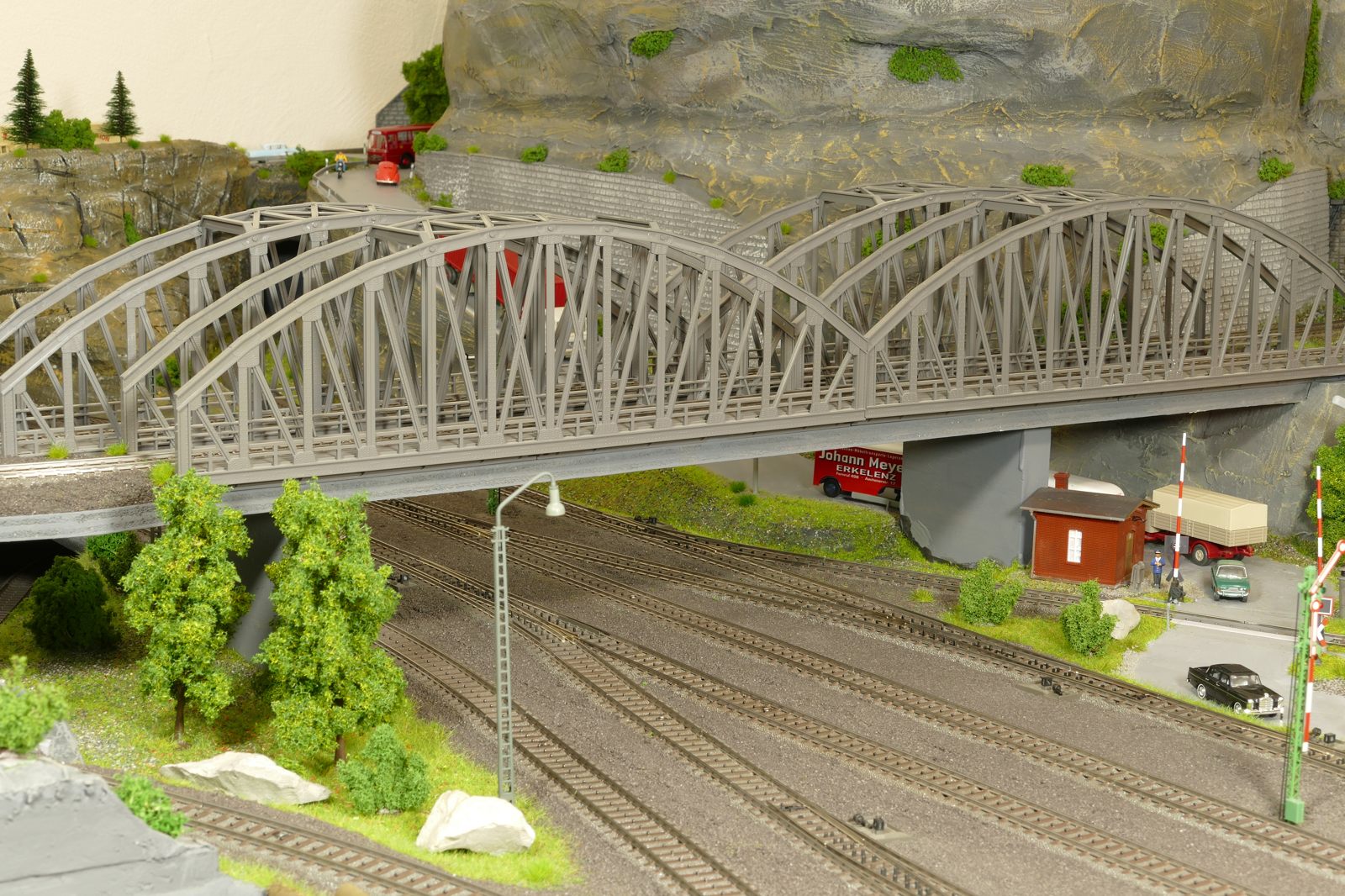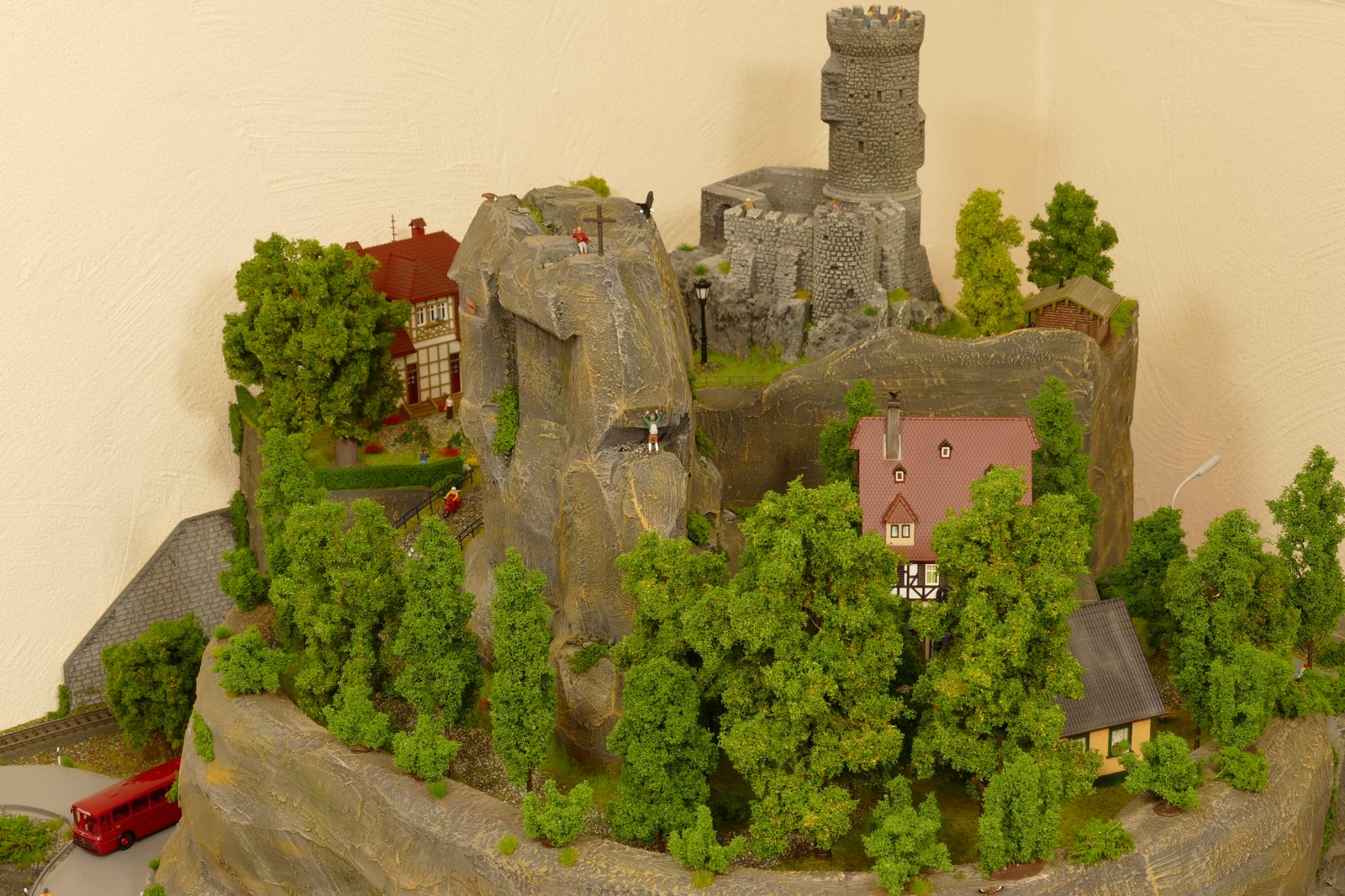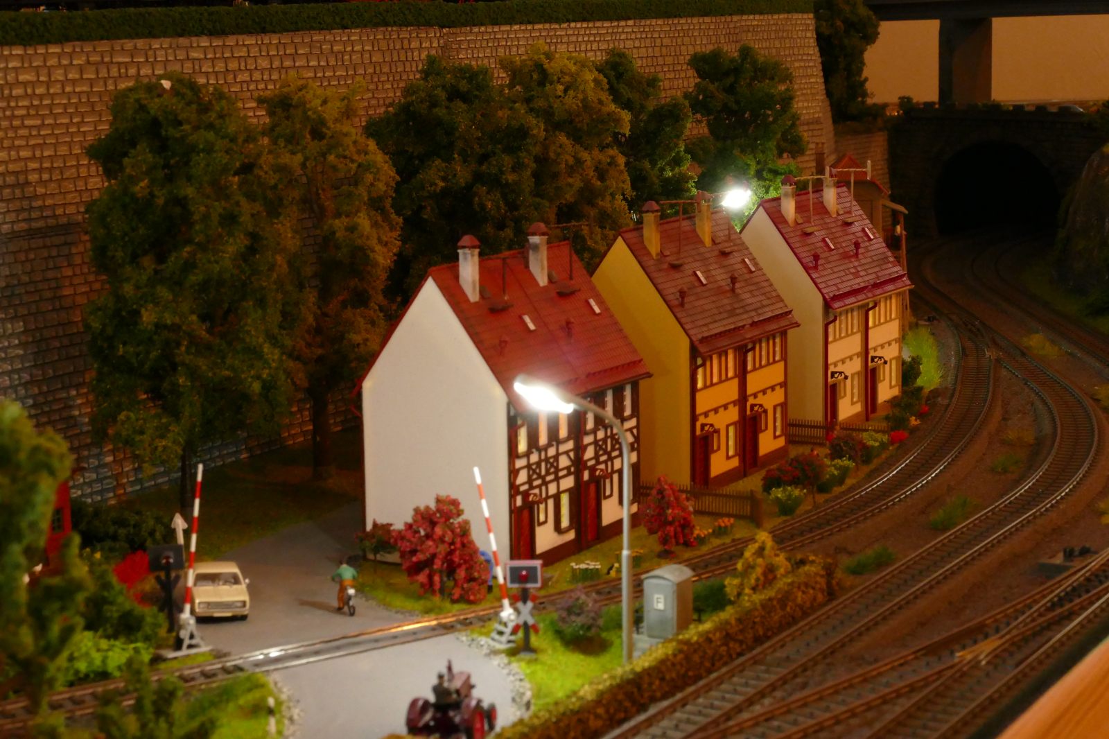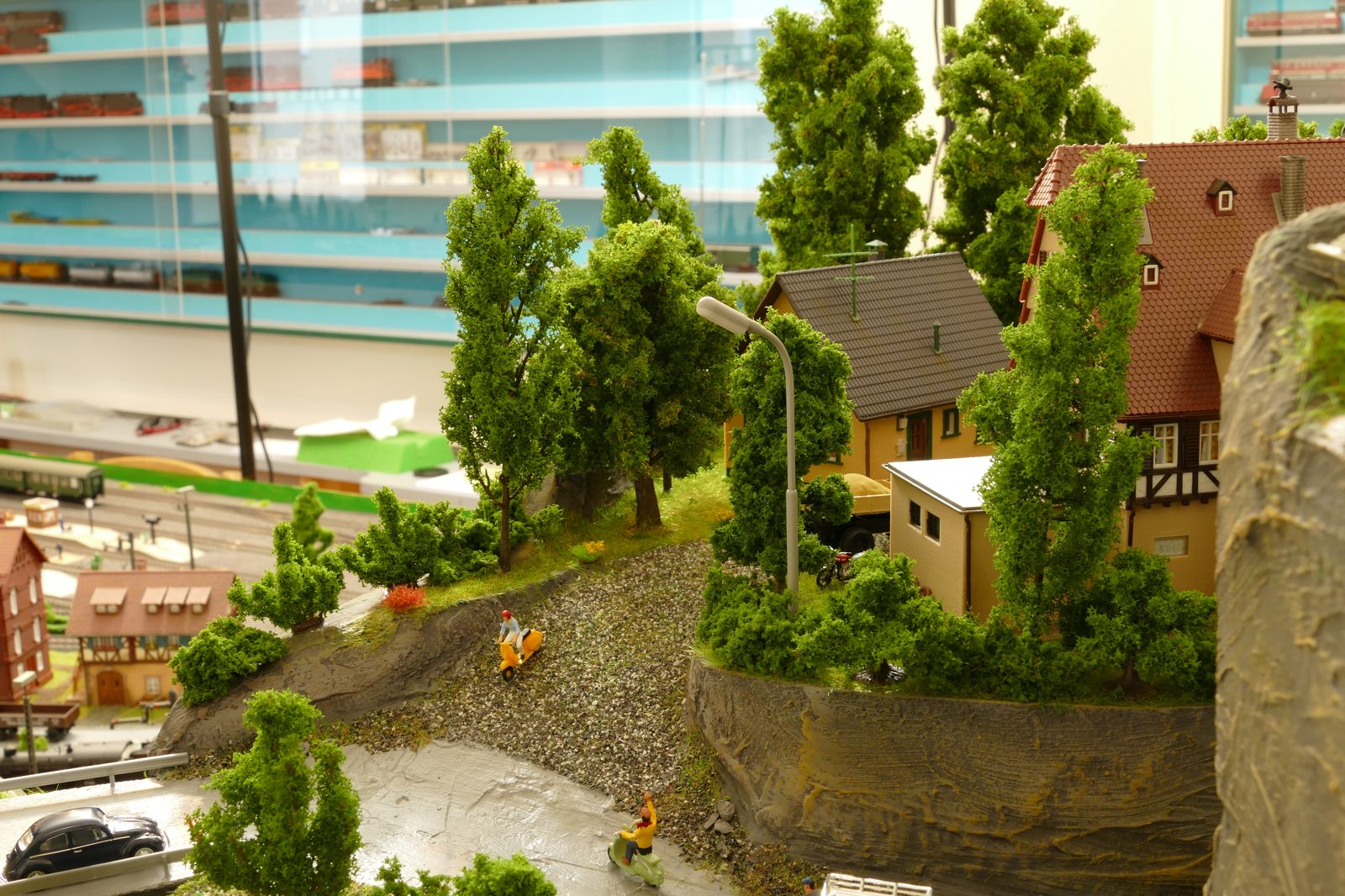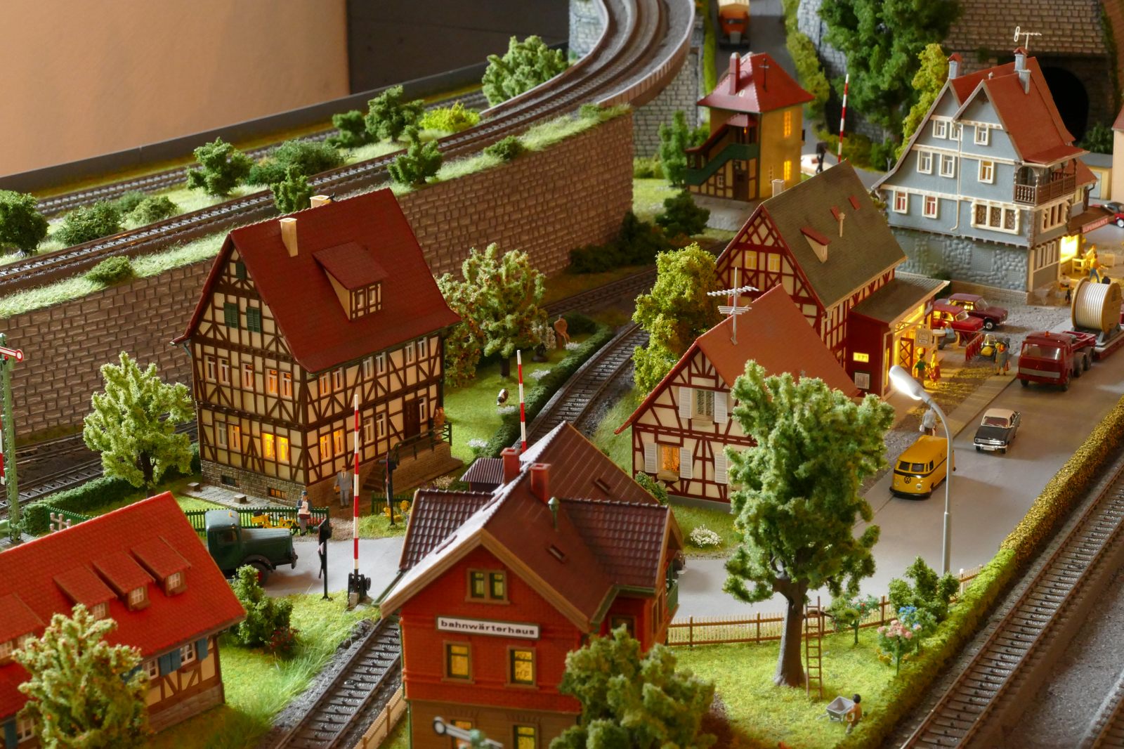Die Stadt Brilon-Wald ist der Mittelpunkt meiner Modelleisenbahnanlage. Sie erstreckt sich hauptsächlich entlang der Bahnhofstraße, breitet sich aber auch weiter aus ins Bergland und besitzt ein außerhalb gelegenes größeres Gewerbegebiet, das ich separat vorstelle. Brilon-Wald bietet also für seine Bewohner zahlreiche Arbeitsplätze, einen großen Bahnhof mit Gepäckabfertigung und Güterbahnhof sowie Betriebswerk. Weiterhin gibt es eine Polizeistation, die rund um die Uhr besetzt ist. Stadtverwaltung, Schule, Post, Werkstätten, Tankstelle, Einkaufmöglichkeiten, alles ist noch per Fuß zu erreichen.