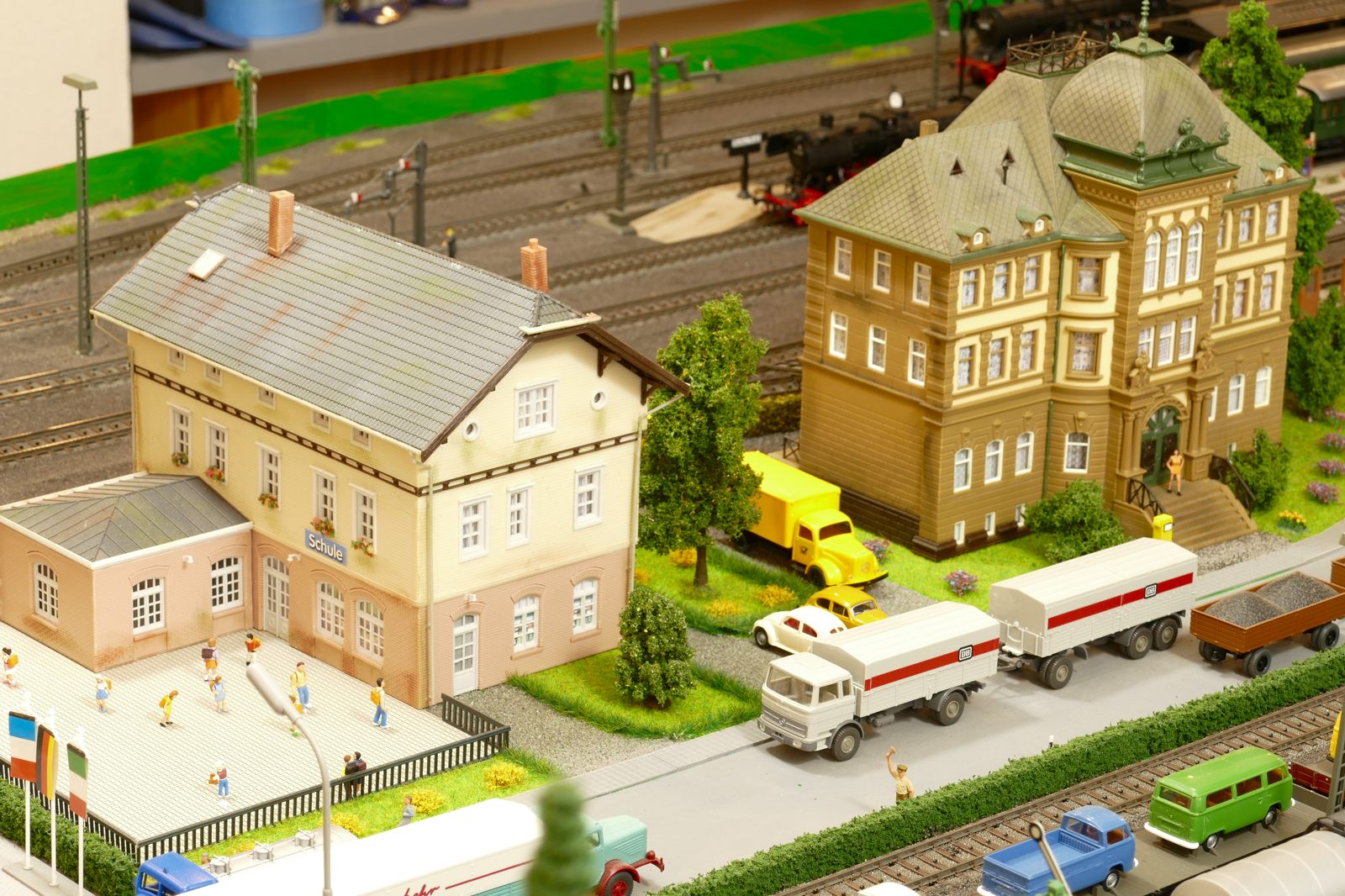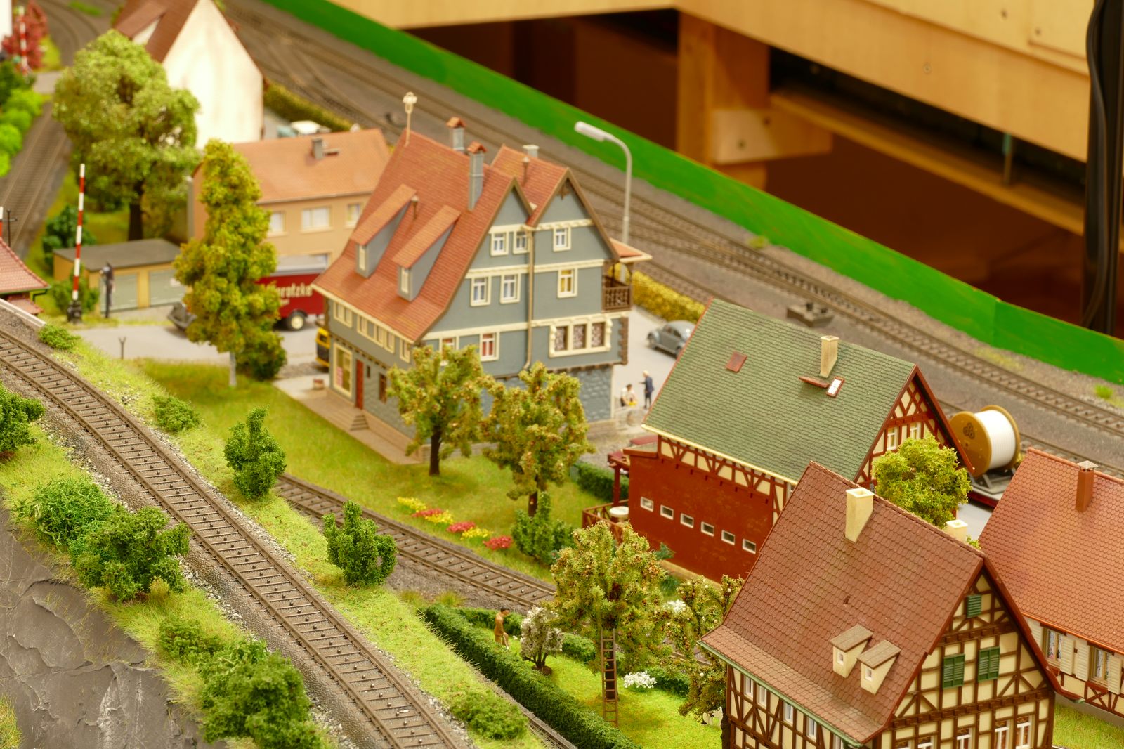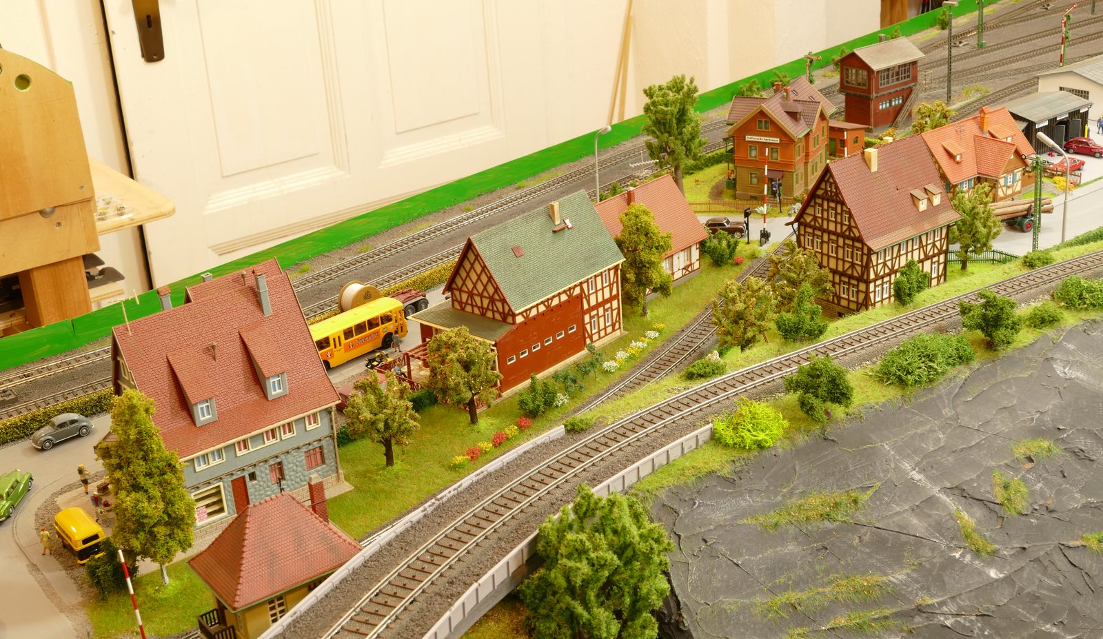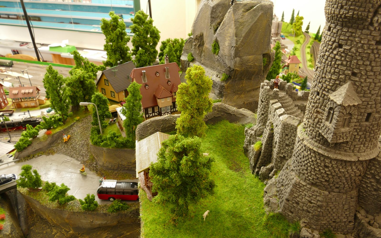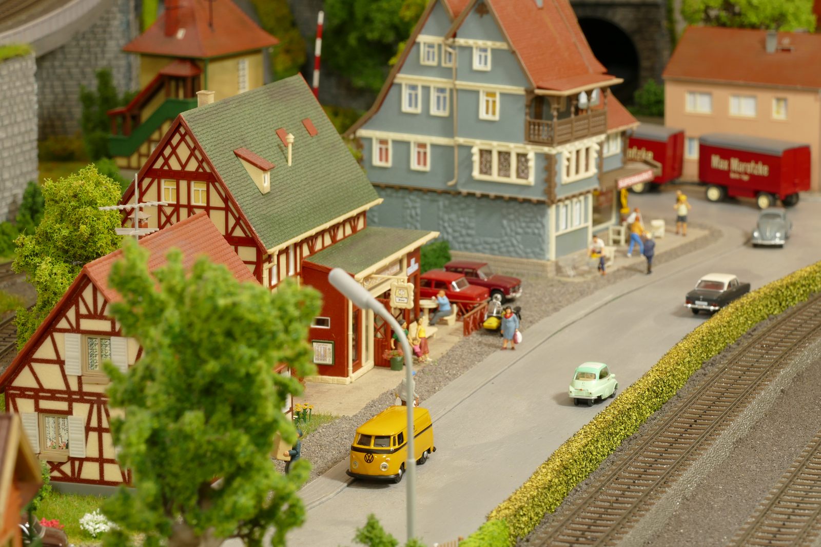 Die Stadt Brilon-Wald ist der Mittelpunkt meiner Modelleisenbahnanlage. Sie erstreckt sich hauptsächlich entlang der Bahnhofstraße, breitet sich aber auch weiter aus ins Bergland und besitzt ein außerhalb gelegenes größeres Gewerbegebiet, das ich separat vorstelle. Brilon-Wald bietet also für seine Bewohner zahlreiche Arbeitsplätze, einen großen Bahnhof mit Gepäckabfertigung und Güterbahnhof sowie Betriebswerk. Weiterhin gibt es eine Polizeistation, die rund um die Uhr besetzt ist. Stadtverwaltung, Schule, Post, Werkstätten, Tankstelle, Einkaufmöglichkeiten, alles ist noch per Fuß zu erreichen.