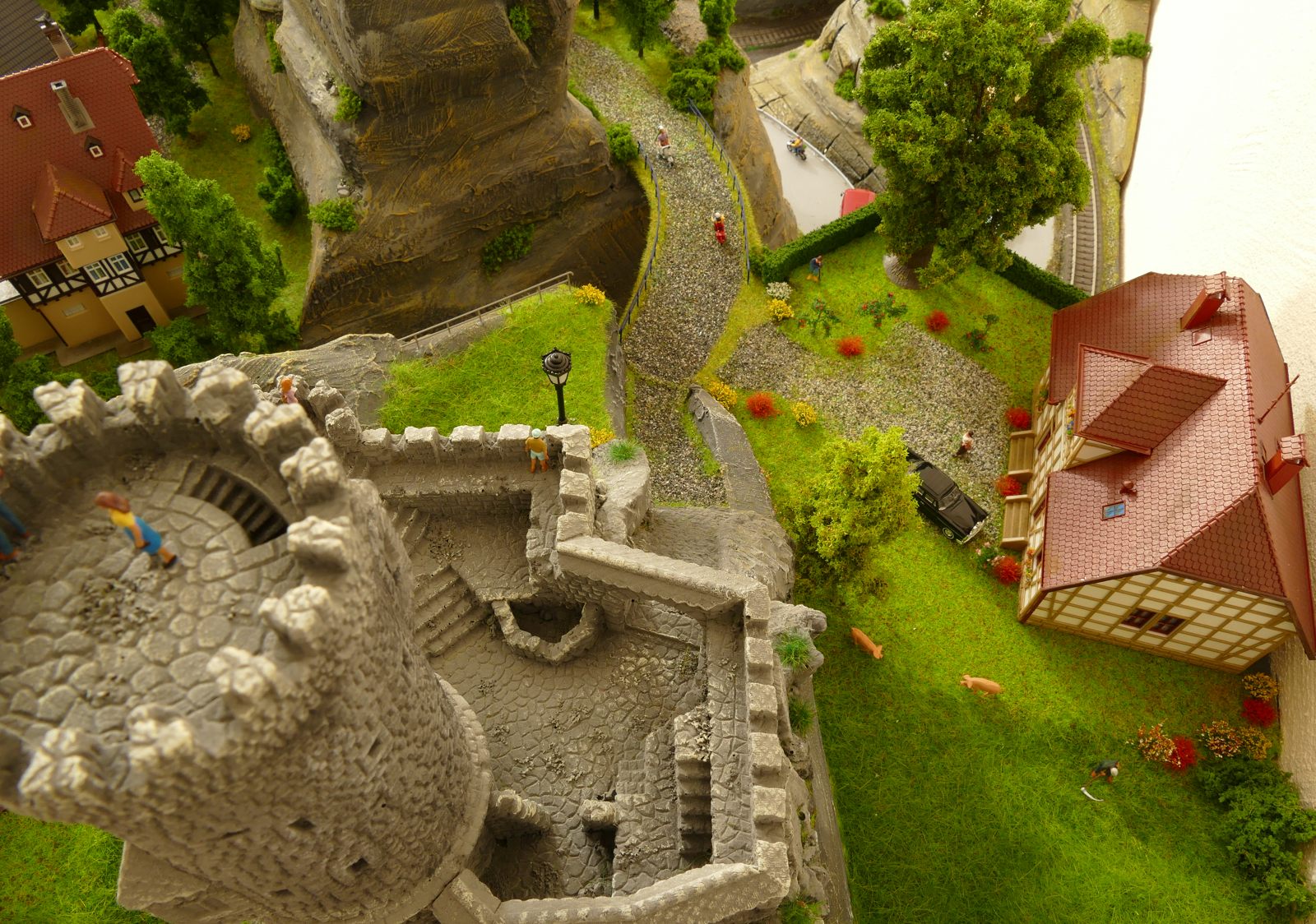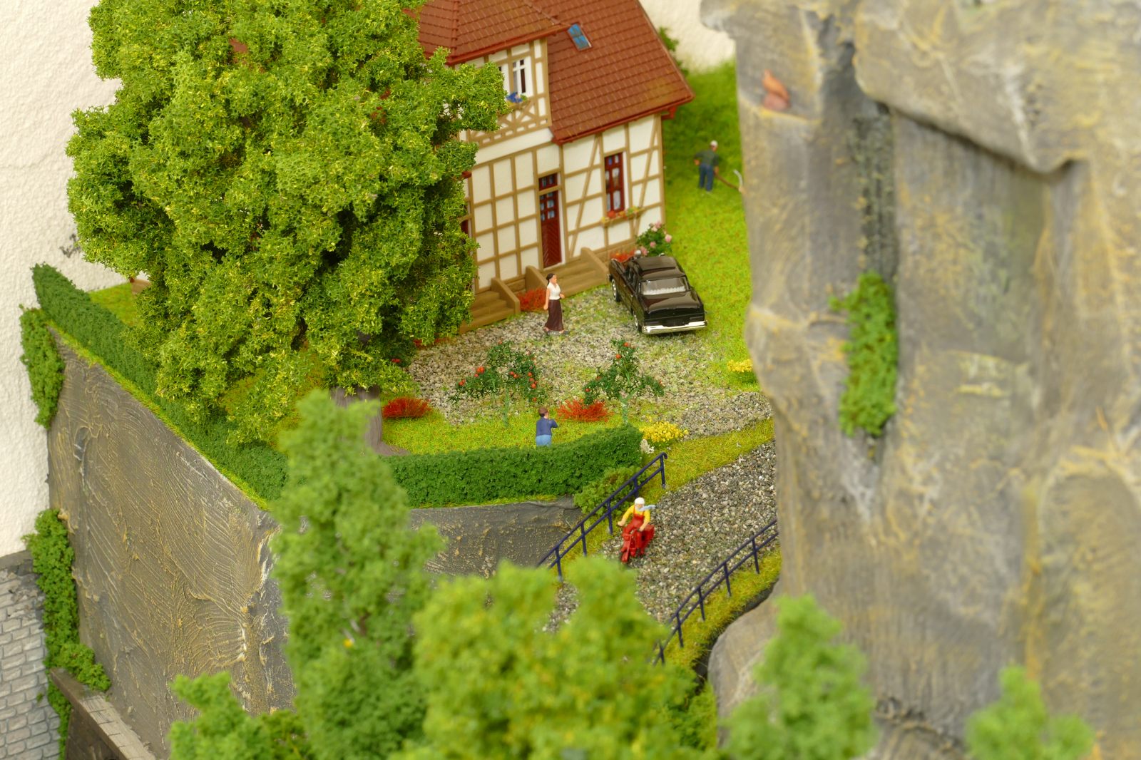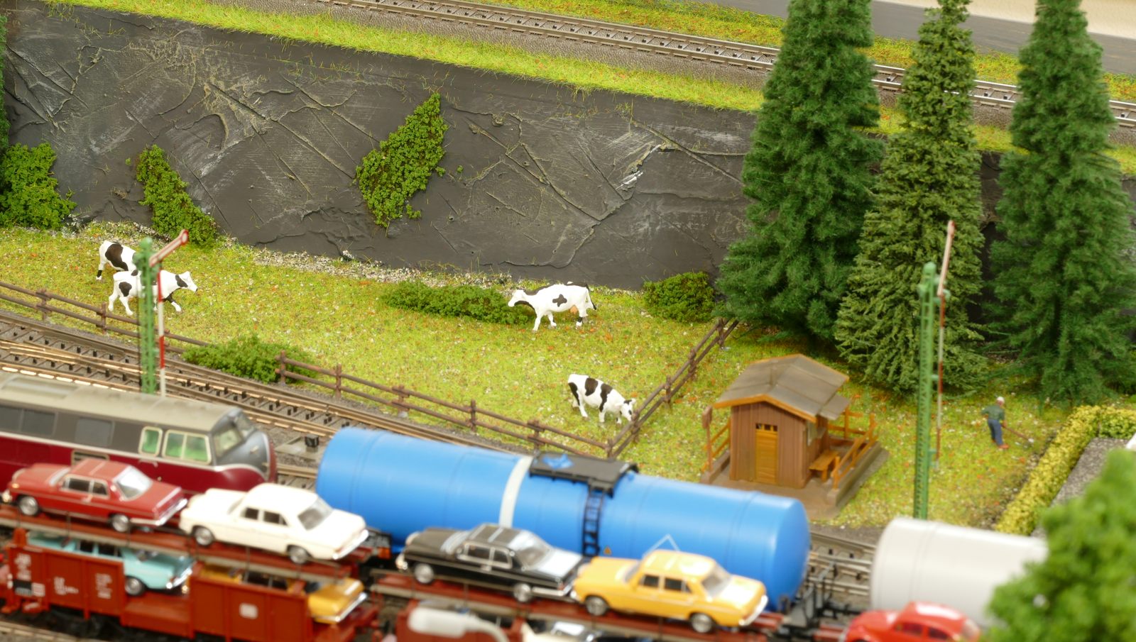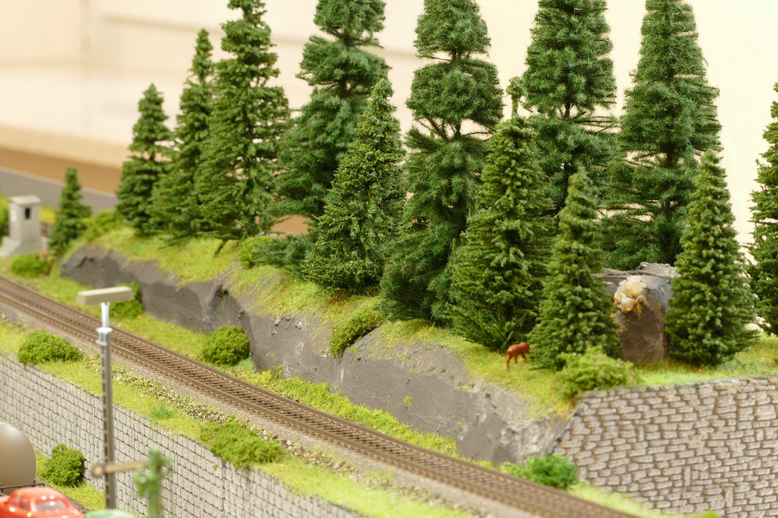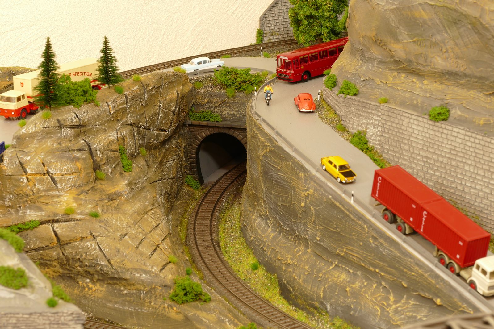 Die Stadt Brilon-Wald ist der Mittelpunkt meiner Modelleisenbahnanlage. Sie erstreckt sich hauptsächlich entlang der Bahnhofstraße, breitet sich aber auch weiter aus ins Bergland und besitzt ein außerhalb gelegenes größeres Gewerbegebiet, das ich separat vorstelle. Brilon-Wald bietet also für seine Bewohner zahlreiche Arbeitsplätze, einen großen Bahnhof mit Gepäckabfertigung und Güterbahnhof sowie Betriebswerk. Weiterhin gibt es eine Polizeistation, die rund um die Uhr besetzt ist. Stadtverwaltung, Schule, Post, Werkstätten, Tankstelle, Einkaufmöglichkeiten, alles ist noch per Fuß zu erreichen.