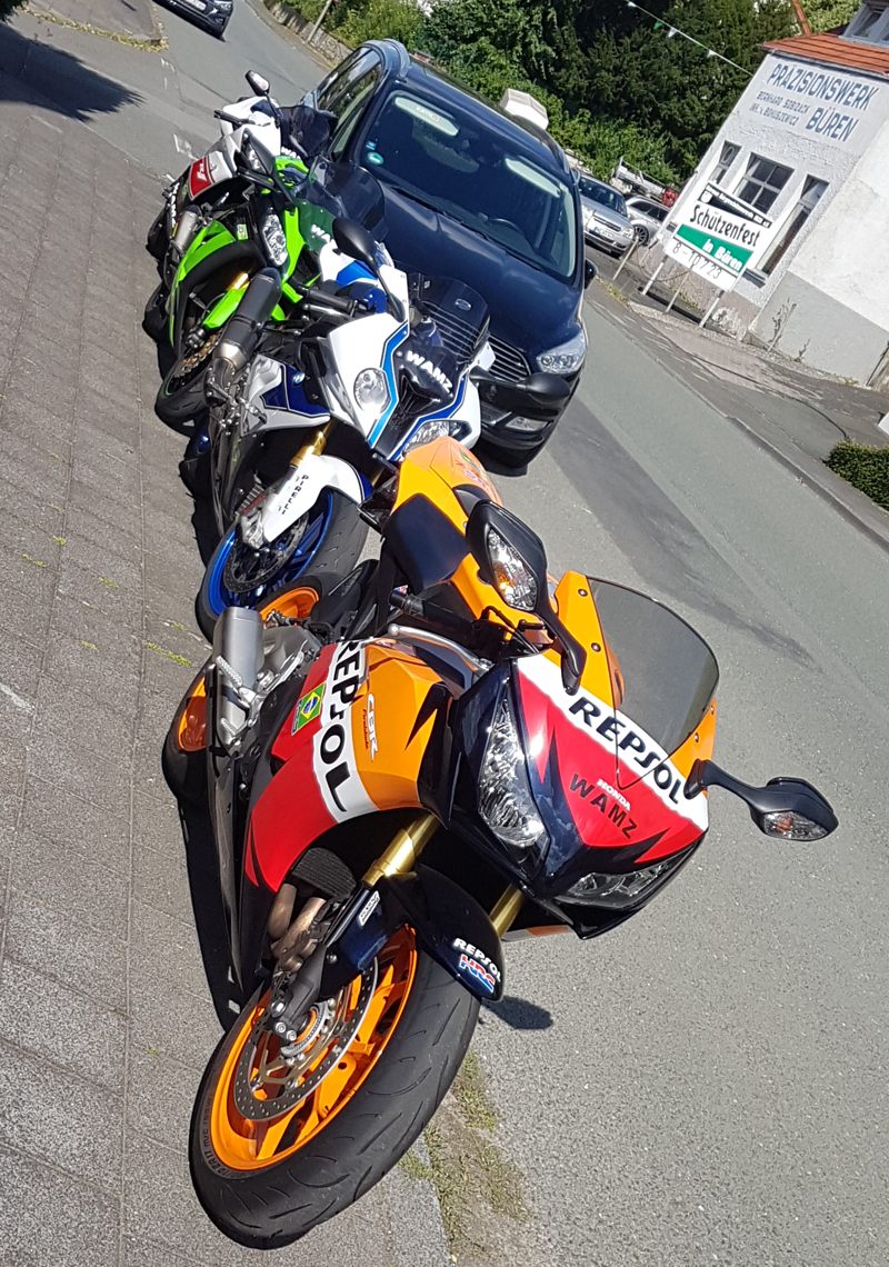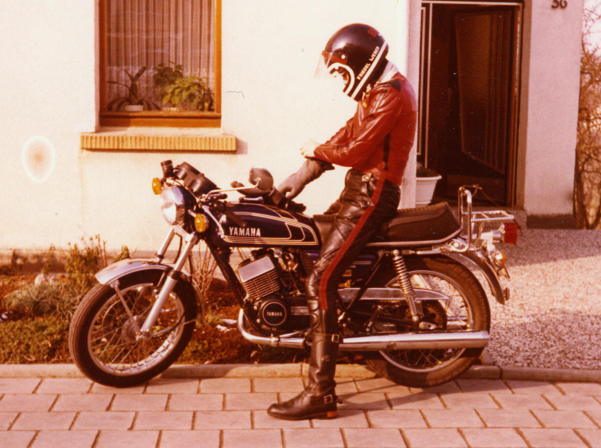 Als Jugendlicher lag ich damals – 1971 – mit unserer Familie am Diemelsee, um zu baden. Nahe zu unserem Familienauto Opel Rekord Caravan stand eine Yamaha, eine 350er Zweitaktmaschine mit der Bezeichnung R5. Ich habe sie bestaunt und fotografiert und wusste nach wenigen Minuten: so eine möchte ich auch mal haben und fahren, sobald ich das Geld dazu verdient habe. Der fette 3.50-18 Hinterreifen hatte es mir angetan. Heute würde man ihn fast als “Fahrradreifen” bezeichnen. Es dauerte dann doch noch 4 Jahre, bis ich nach Abitur und Bundeswehrzeit im Sommer 1975 bei Zweirad Schwede in Paderborn eine Yamaha RD350 bestellte, mein Traummotorrad passend zu meinem finanziellen Rahmen. Auf den Seiten Meine Motorräder habe ich alle Maschinen aufgelistet und vorgestellt, die ich bisher besessen habe. Zu manchem Motorrad gibt es eine oder mehrere Geschichten, die ich jeweils unter dem Foto erzähle. Viel Vergnügen und Hals und Beinbruch!