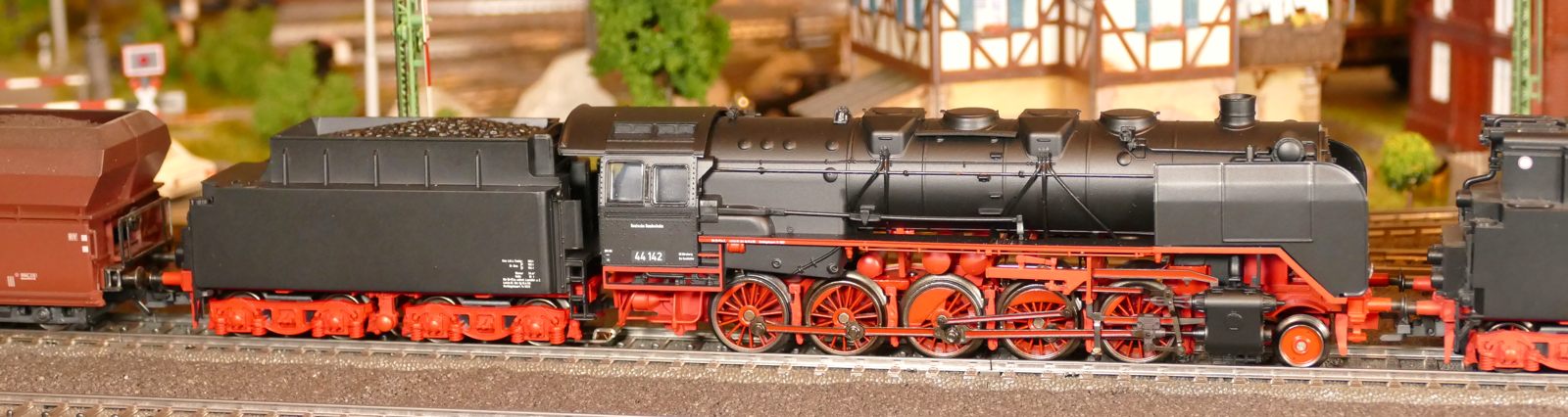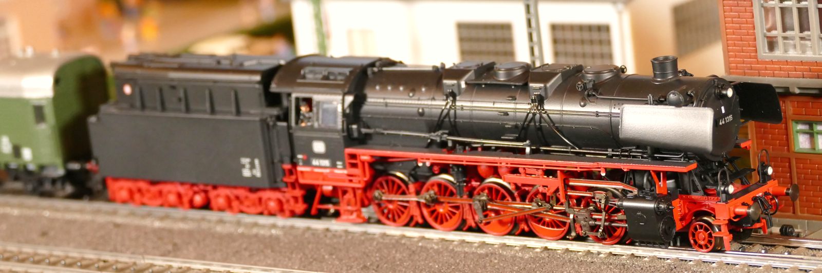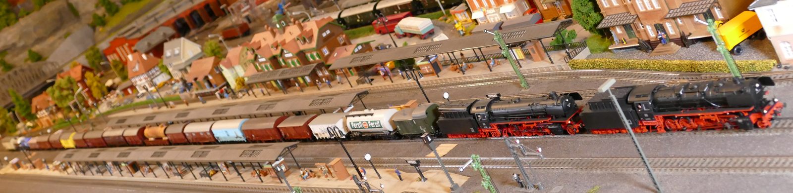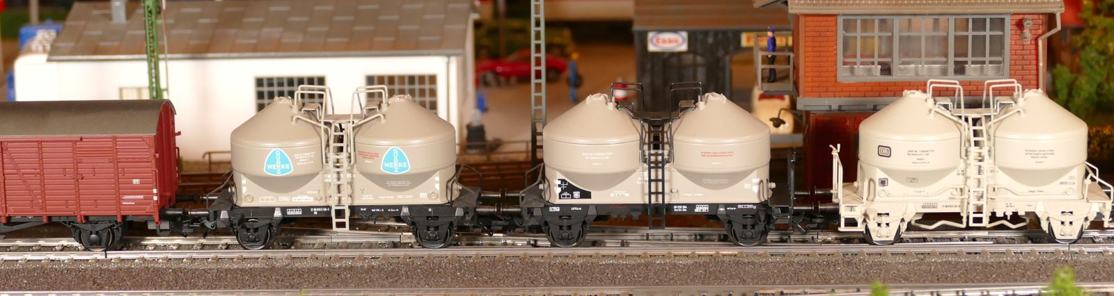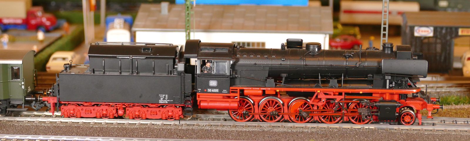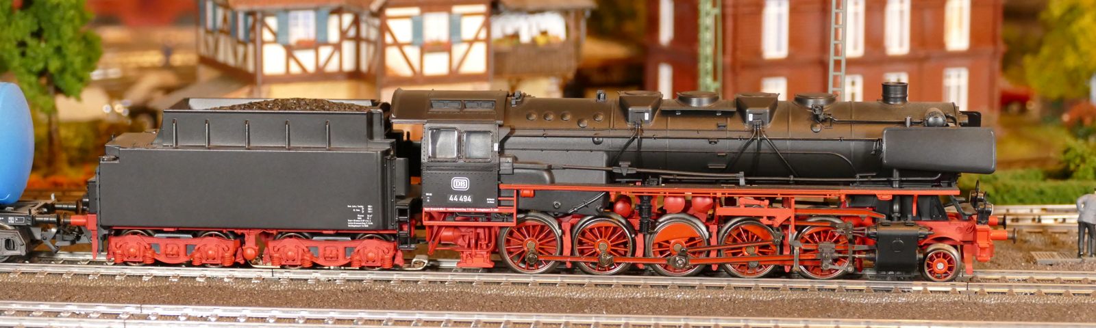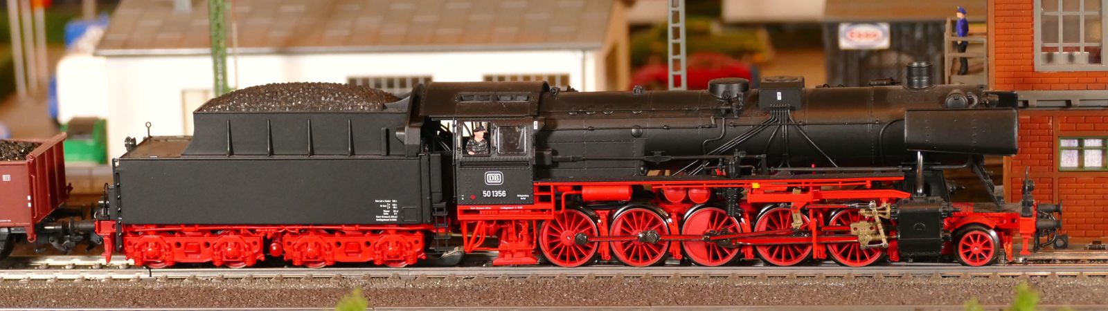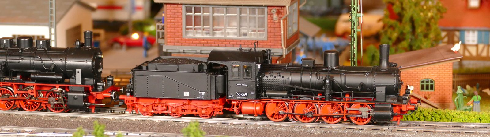 In den Jahren nach dem 2. Weltkrieg oblag es unseren Güterzügen, die durch den Krieg am Boden liegende deutsche Wirtschaft wieder flott zu machen. Sie bildeten das Rückgrat der deutschen Wirtschaft. Landauf, landab mussten Güter von A nach B usw. transportiert werden. Der Lkw-Verkehr spielte noch nicht die Rolle, die er heute hat. Dennoch hatte die Deutsche Bundesbahn ihre liebe Not, dem immer größer werdenden Transportvolumen per Lkw-Verkehr Paroli zu bieten. Bis weit in die 1970er Jahre transportierten Dampfgüterzüge Kohle, Erz und Stahl zwischen den Nordseehäfen und den Industriezentren an Rhein-Ruhr und Saar. Doch auch dieses Seqment machten ihnen in den 1970ern die Elektro- und Diesellokomotiven streitig. Auf einer Modellbahn kann ich alle drei Traktionsarten nach Lust und Laune einsetzen, sollte aber dennoch die Dominanz der Dampflokomotiven in der Epoche III im Güterverkehr nicht außer acht lassen. Freut euch auf lange oder kurze, in jedem Fall abwechslungsreiche Güterzüge oder auch Ganzzüge. Um etwas Platz auf dieser Site zu sparen, habe ich die kürzeren Güterwagen immer im Zweier-Set – also hintereinander bzw. im Foto nebeneinander – im Zug fotografiert. Es ist selbstverständlich, dass die hier und bei den Schnellzügen und Personenzügen gezeigte Lok-Zug-Kombination auf allen Seiten meiner Website nur eine Möglichkeit von vielen ist, die ich regelmäßig ändere. Viel Freude!