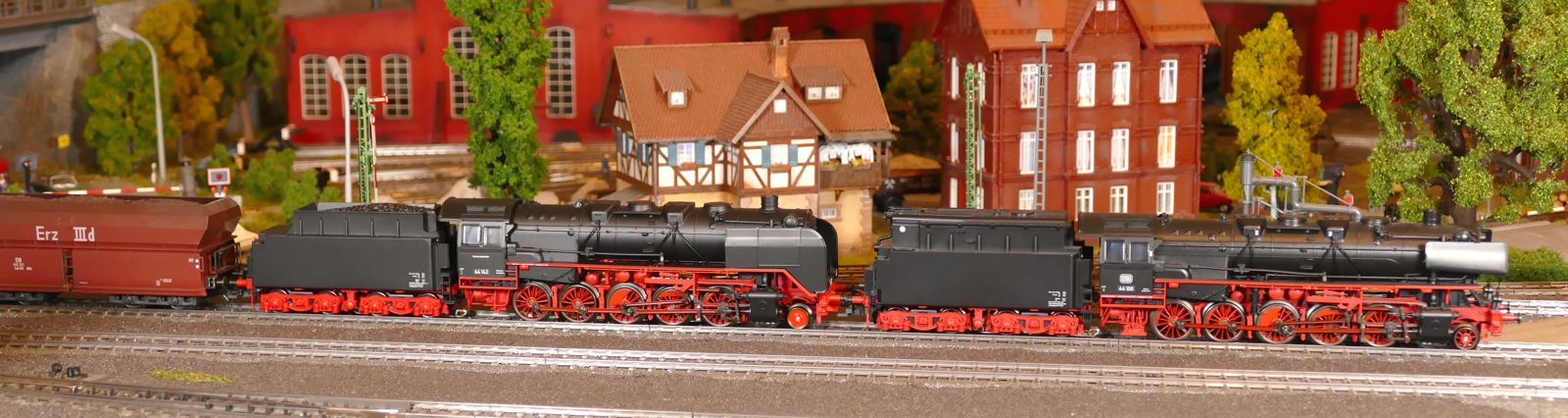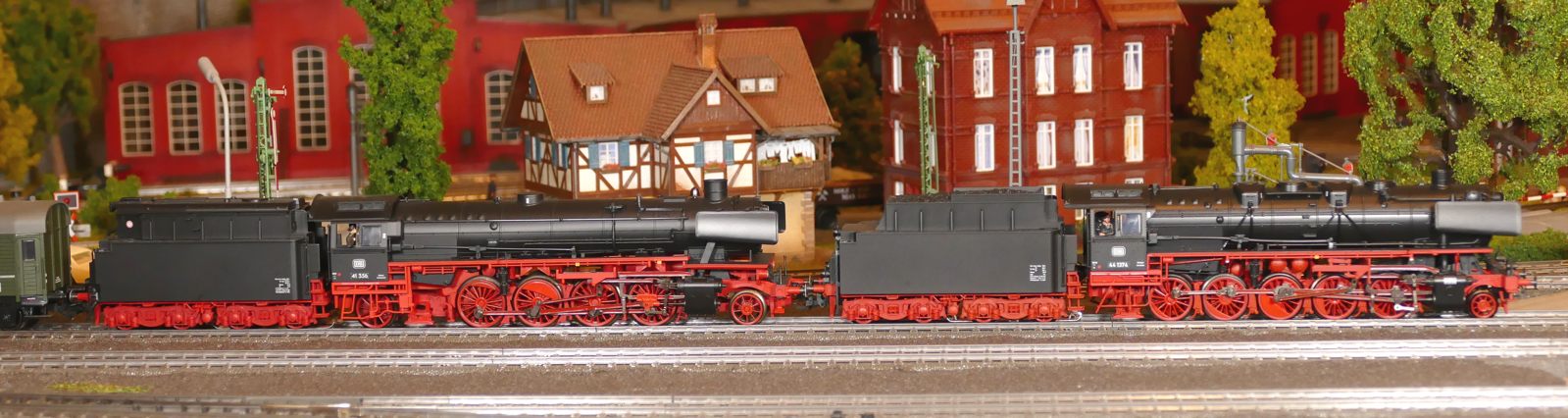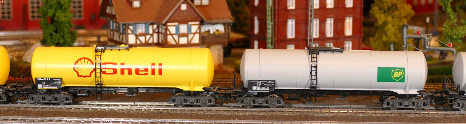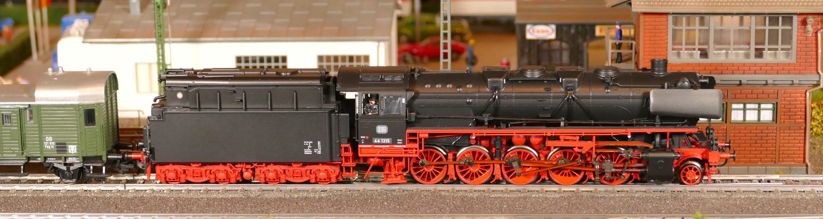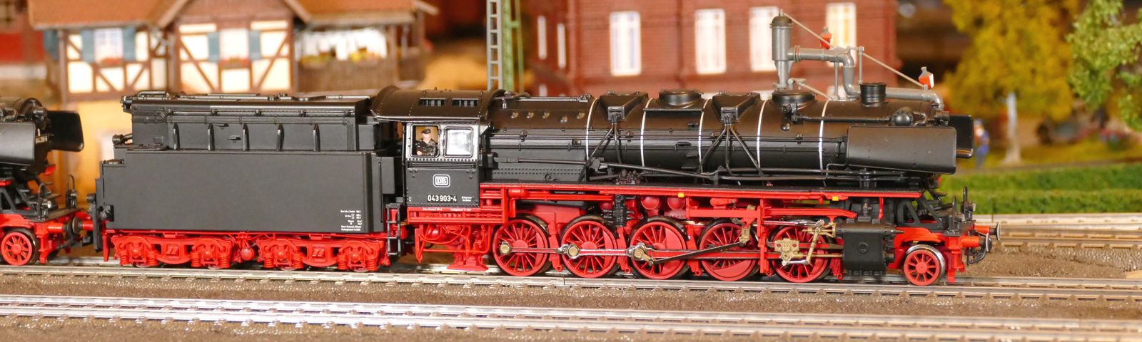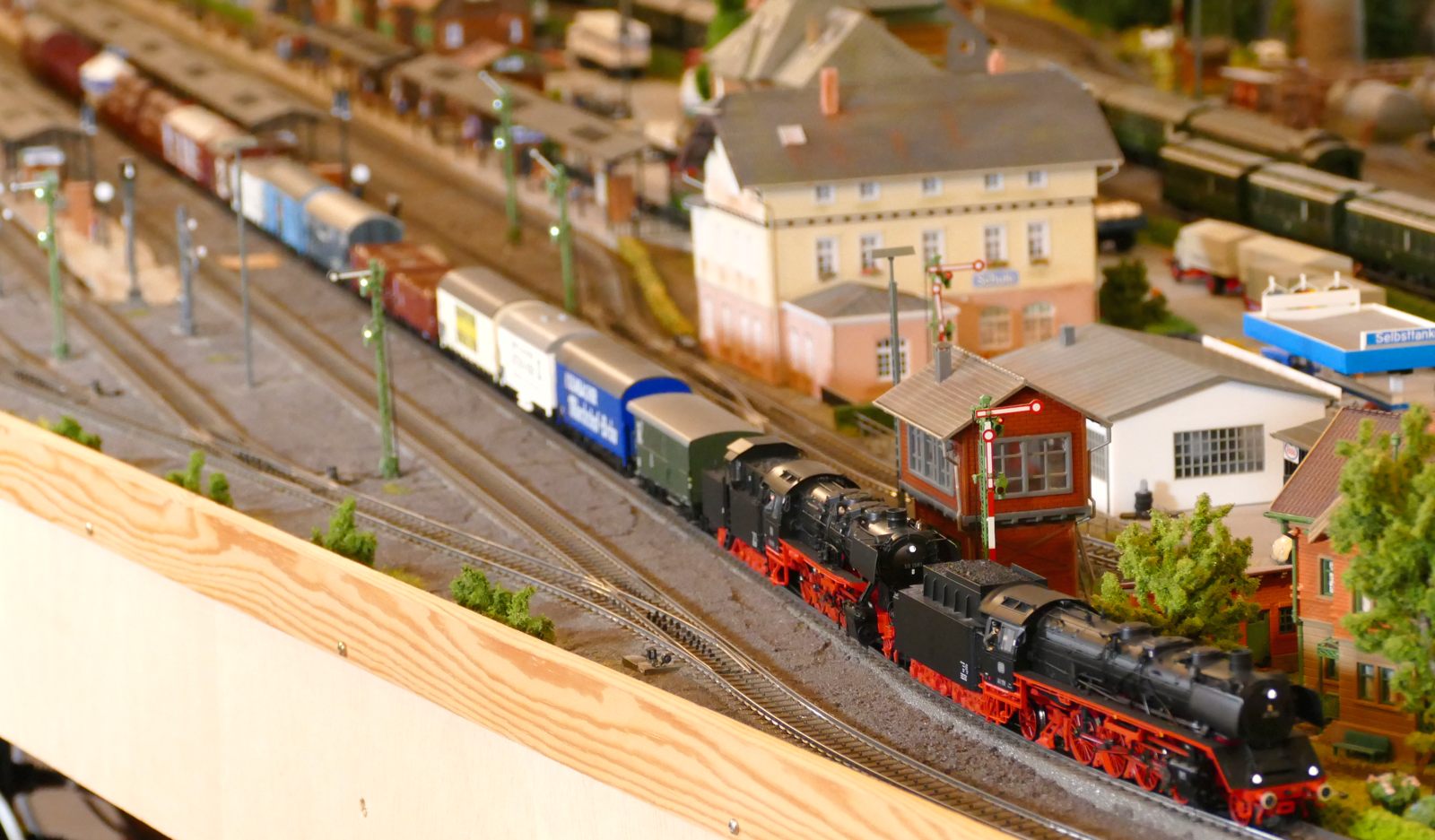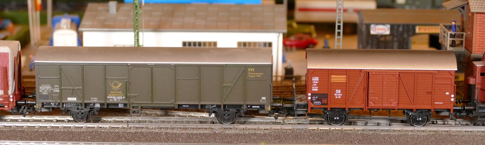 In den Jahren nach dem 2. Weltkrieg oblag es unseren Güterzügen, die durch den Krieg am Boden liegende deutsche Wirtschaft wieder flott zu machen. Sie bildeten das Rückgrat der deutschen Wirtschaft. Landauf, landab mussten Güter von A nach B usw. transportiert werden. Der Lkw-Verkehr spielte noch nicht die Rolle, die er heute hat. Dennoch hatte die Deutsche Bundesbahn ihre liebe Not, dem immer größer werdenden Transportvolumen per Lkw-Verkehr Paroli zu bieten. Bis weit in die 1970er Jahre transportierten Dampfgüterzüge Kohle, Erz und Stahl zwischen den Nordseehäfen und den Industriezentren an Rhein-Ruhr und Saar. Doch auch dieses Seqment machten ihnen in den 1970ern die Elektro- und Diesellokomotiven streitig. Auf einer Modellbahn kann ich alle drei Traktionsarten nach Lust und Laune einsetzen, sollte aber dennoch die Dominanz der Dampflokomotiven in der Epoche III im Güterverkehr nicht außer acht lassen. Freut euch auf lange oder kurze, in jedem Fall abwechslungsreiche Güterzüge oder auch Ganzzüge. Um etwas Platz auf dieser Site zu sparen, habe ich die kürzeren Güterwagen immer im Zweier-Set – also hintereinander bzw. im Foto nebeneinander – im Zug fotografiert. Es ist selbstverständlich, dass die hier und bei den Schnellzügen und Personenzügen gezeigte Lok-Zug-Kombination auf allen Seiten meiner Website nur eine Möglichkeit von vielen ist, die ich regelmäßig ändere. Viel Freude!