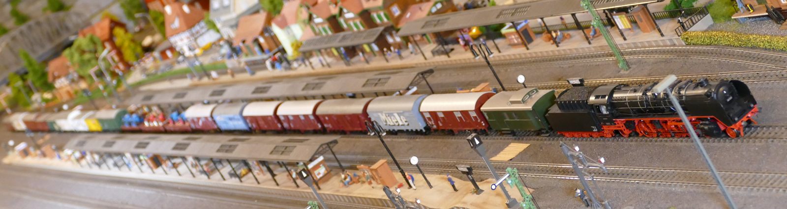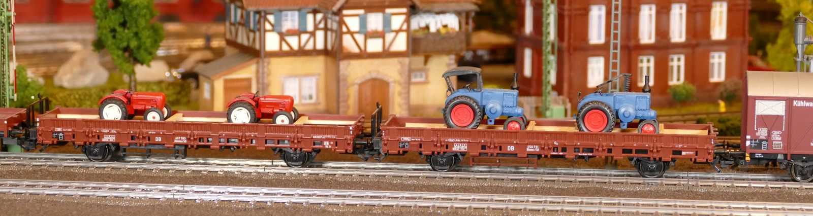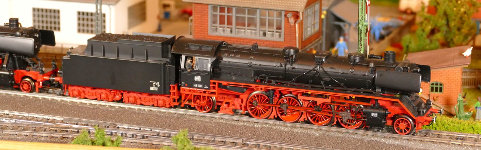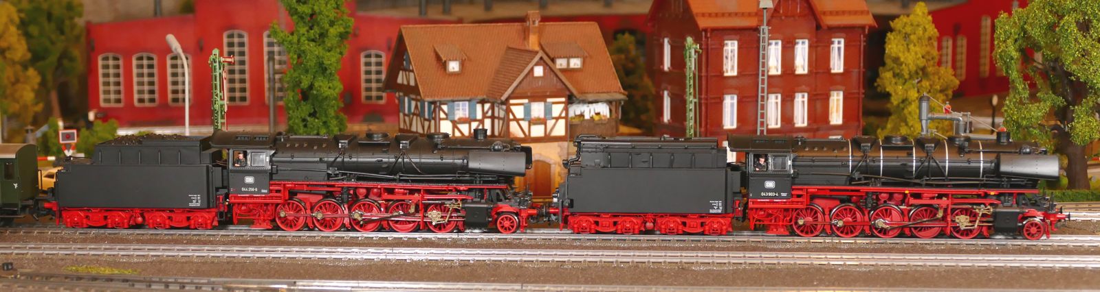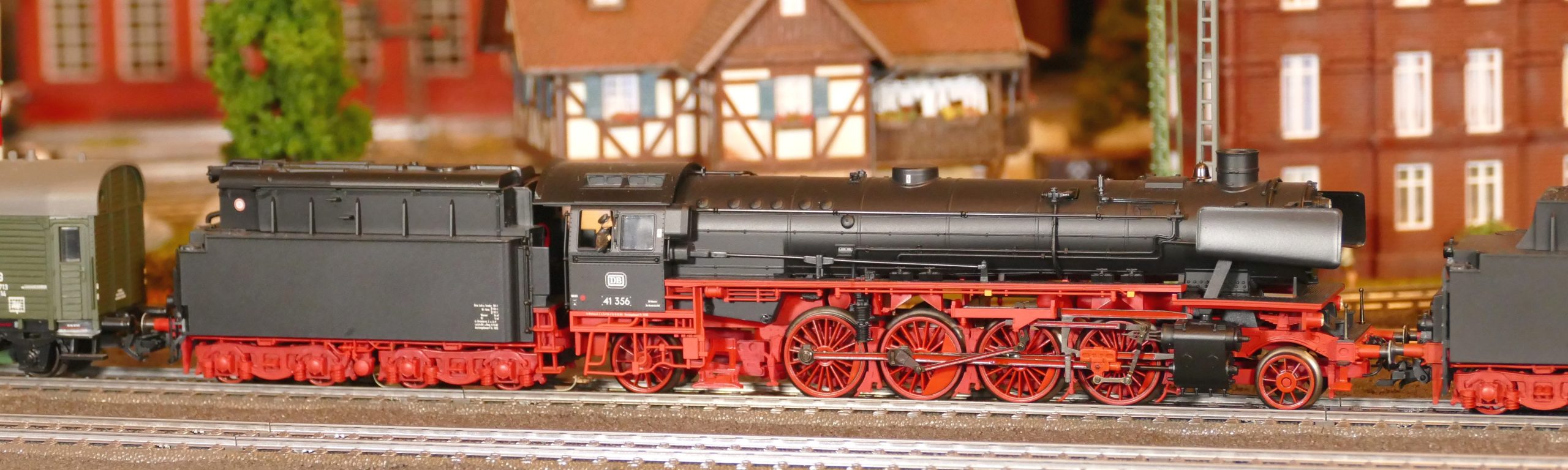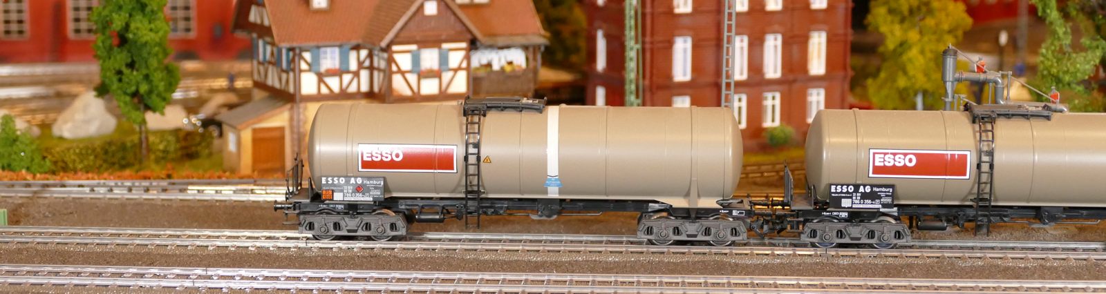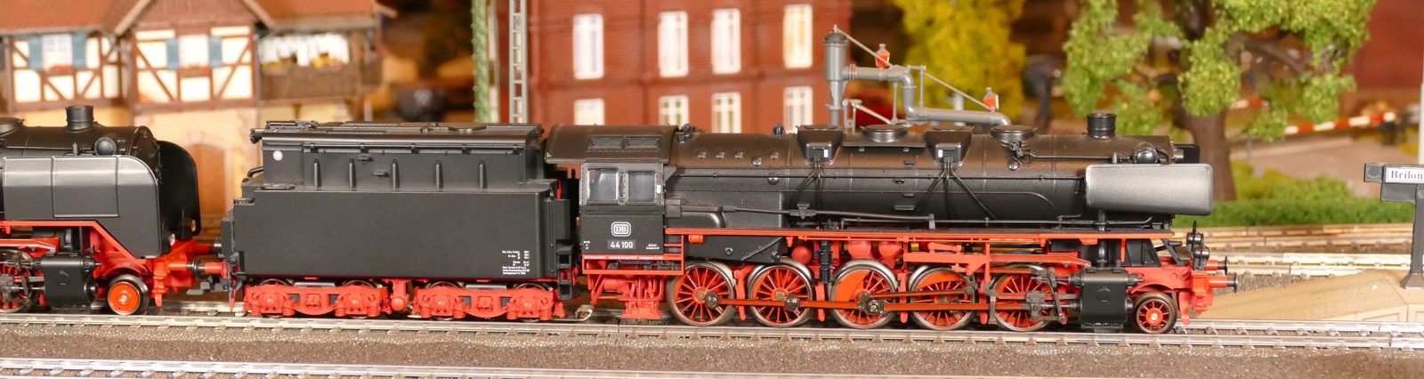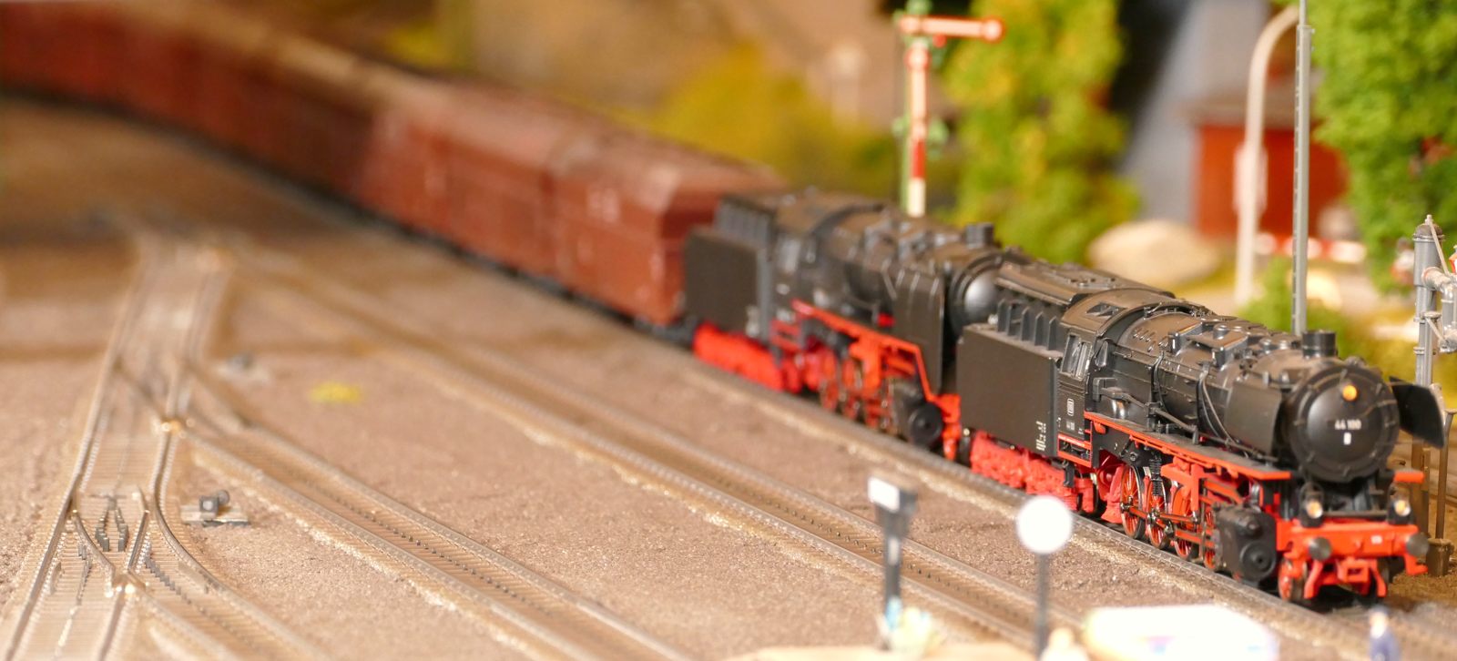 In den Jahren nach dem 2. Weltkrieg oblag es unseren Güterzügen, die durch den Krieg am Boden liegende deutsche Wirtschaft wieder flott zu machen. Sie bildeten das Rückgrat der deutschen Wirtschaft. Landauf, landab mussten Güter von A nach B usw. transportiert werden. Der Lkw-Verkehr spielte noch nicht die Rolle, die er heute hat. Dennoch hatte die Deutsche Bundesbahn ihre liebe Not, dem immer größer werdenden Transportvolumen per Lkw-Verkehr Paroli zu bieten. Bis weit in die 1970er Jahre transportierten Dampfgüterzüge Kohle, Erz und Stahl zwischen den Nordseehäfen und den Industriezentren an Rhein-Ruhr und Saar. Doch auch dieses Seqment machten ihnen in den 1970ern die Elektro- und Diesellokomotiven streitig. Auf einer Modellbahn kann ich alle drei Traktionsarten nach Lust und Laune einsetzen, sollte aber dennoch die Dominanz der Dampflokomotiven in der Epoche III im Güterverkehr nicht außer acht lassen. Freut euch auf lange oder kurze, in jedem Fall abwechslungsreiche Güterzüge oder auch Ganzzüge. Um etwas Platz auf dieser Site zu sparen, habe ich die kürzeren Güterwagen immer im Zweier-Set – also hintereinander bzw. im Foto nebeneinander – im Zug fotografiert. Es ist selbstverständlich, dass die hier und bei den Schnellzügen und Personenzügen gezeigte Lok-Zug-Kombination auf allen Seiten meiner Website nur eine Möglichkeit von vielen ist, die ich regelmäßig ändere. Viel Freude!