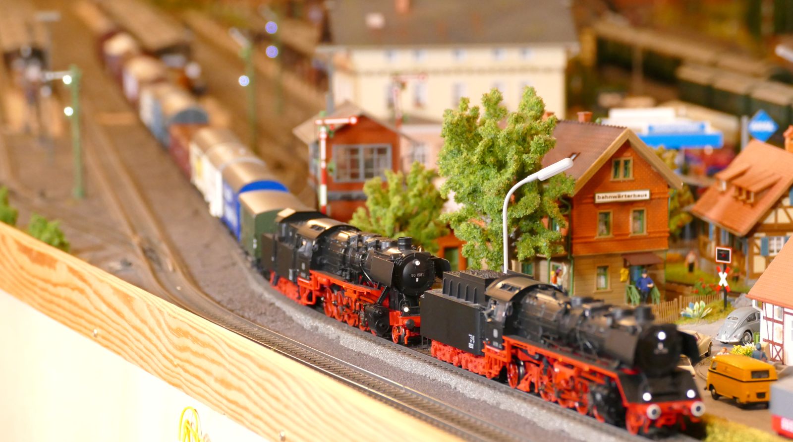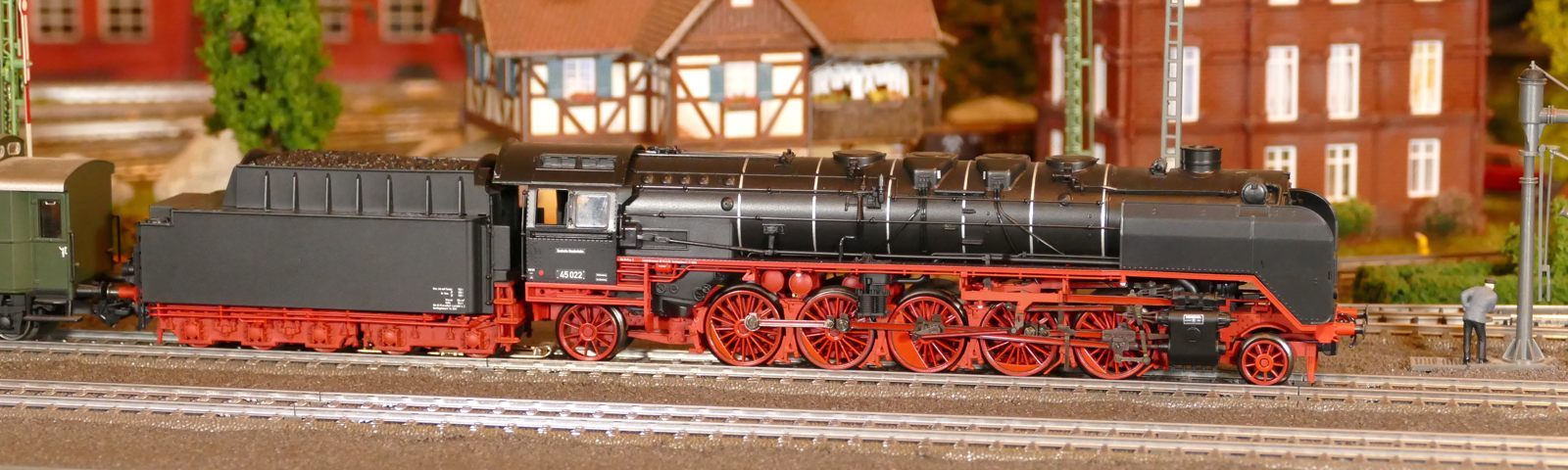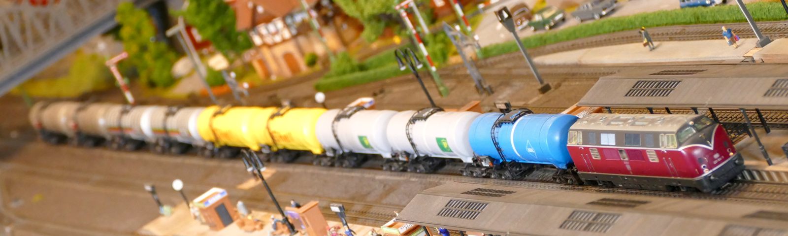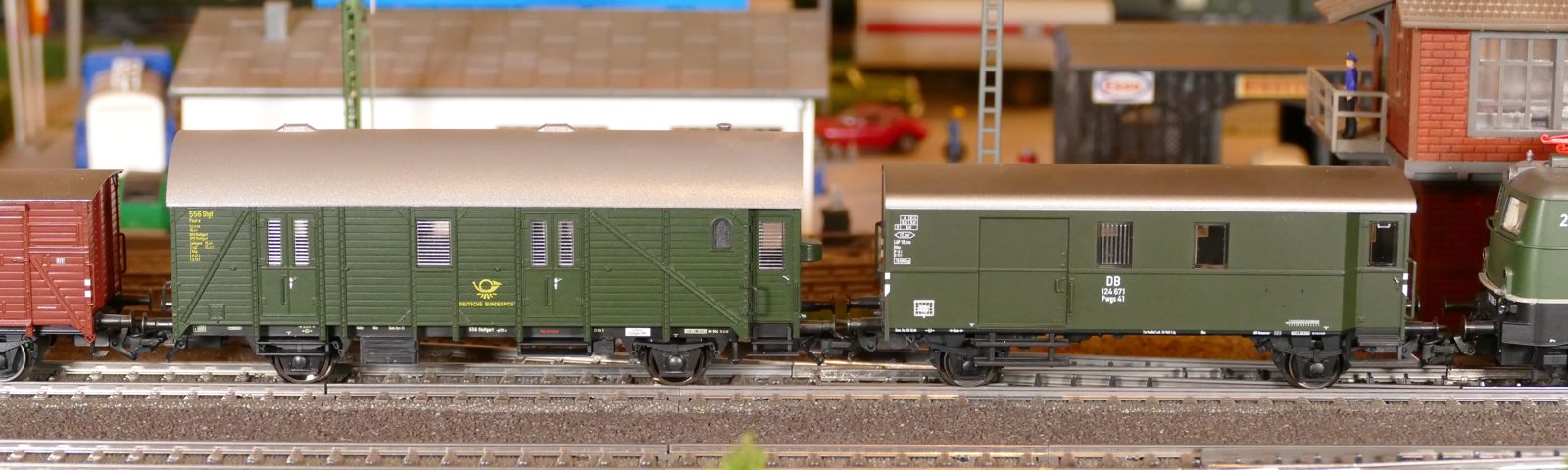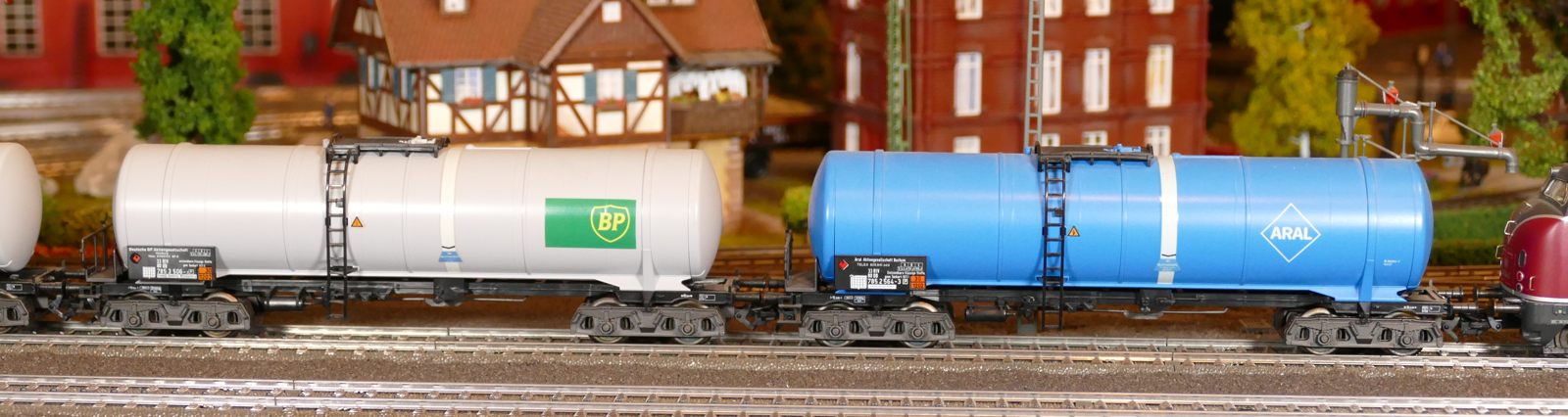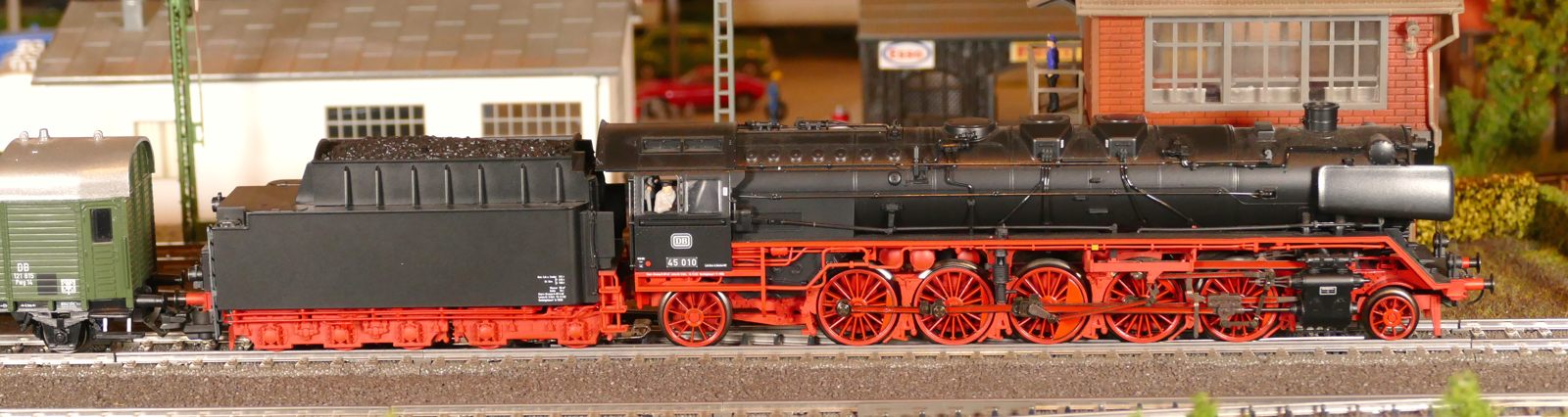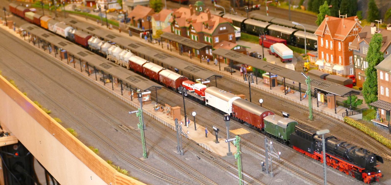 In den Jahren nach dem 2. Weltkrieg oblag es unseren Güterzügen, die durch den Krieg am Boden liegende deutsche Wirtschaft wieder flott zu machen. Sie bildeten das Rückgrat der deutschen Wirtschaft. Landauf, landab mussten Güter von A nach B usw. transportiert werden. Der Lkw-Verkehr spielte noch nicht die Rolle, die er heute hat. Dennoch hatte die Deutsche Bundesbahn ihre liebe Not, dem immer größer werdenden Transportvolumen per Lkw-Verkehr Paroli zu bieten. Bis weit in die 1970er Jahre transportierten Dampfgüterzüge Kohle, Erz und Stahl zwischen den Nordseehäfen und den Industriezentren an Rhein-Ruhr und Saar. Doch auch dieses Seqment machten ihnen in den 1970ern die Elektro- und Diesellokomotiven streitig. Auf einer Modellbahn kann ich alle drei Traktionsarten nach Lust und Laune einsetzen, sollte aber dennoch die Dominanz der Dampflokomotiven in der Epoche III im Güterverkehr nicht außer acht lassen. Freut euch auf lange oder kurze, in jedem Fall abwechslungsreiche Güterzüge oder auch Ganzzüge. Um etwas Platz auf dieser Site zu sparen, habe ich die kürzeren Güterwagen immer im Zweier-Set – also hintereinander bzw. im Foto nebeneinander – im Zug fotografiert. Es ist selbstverständlich, dass die hier und bei den Schnellzügen und Personenzügen gezeigte Lok-Zug-Kombination auf allen Seiten meiner Website nur eine Möglichkeit von vielen ist, die ich regelmäßig ändere. Viel Freude!