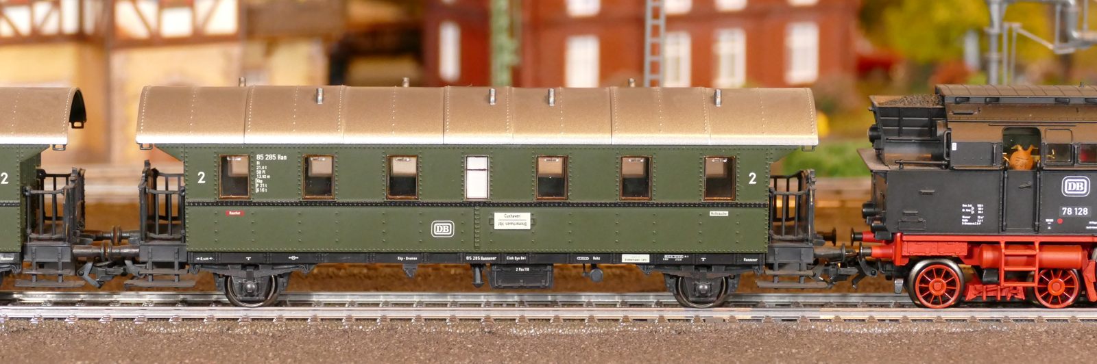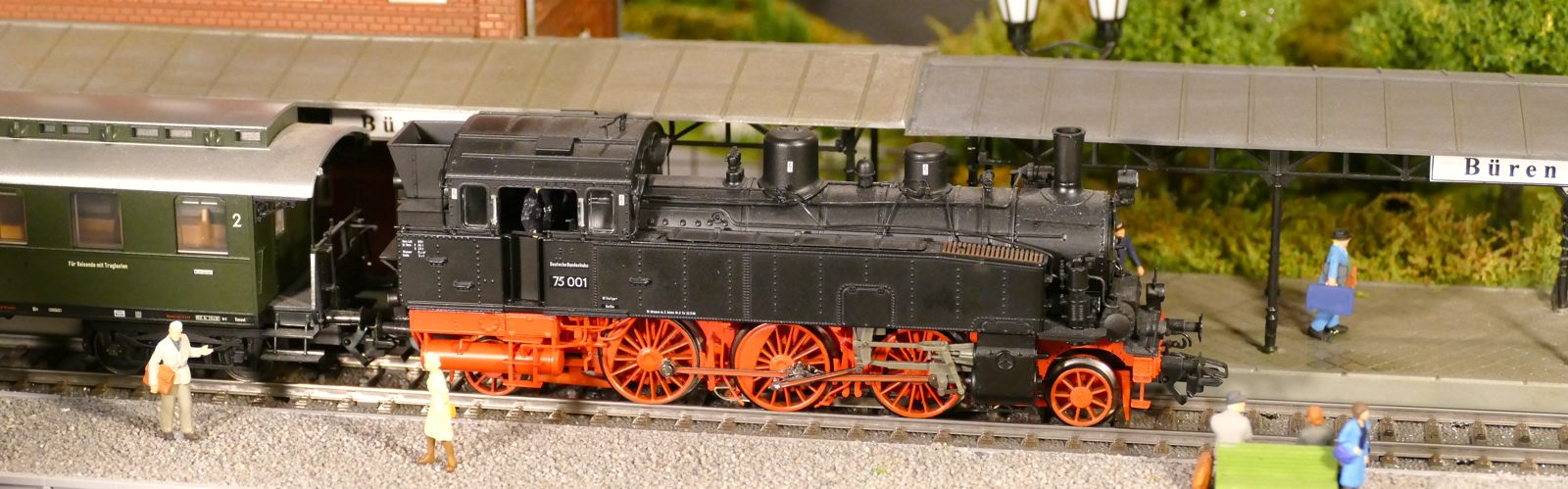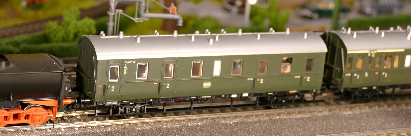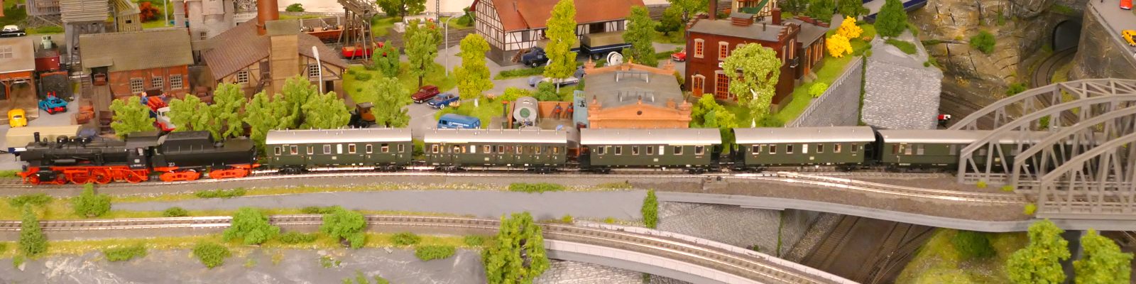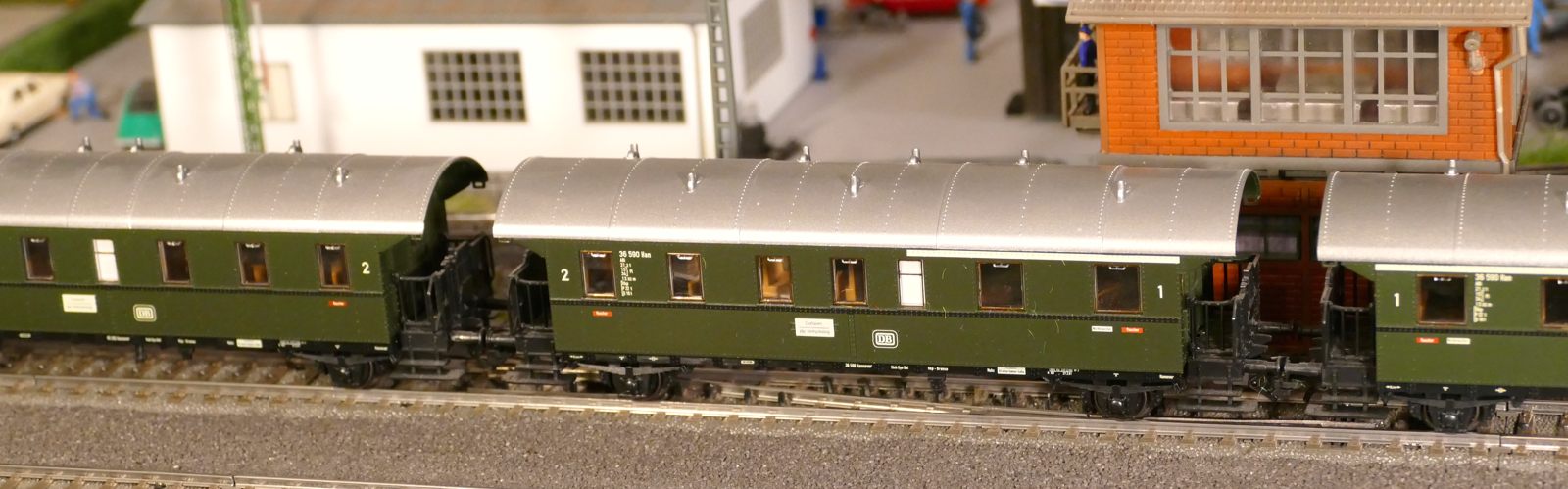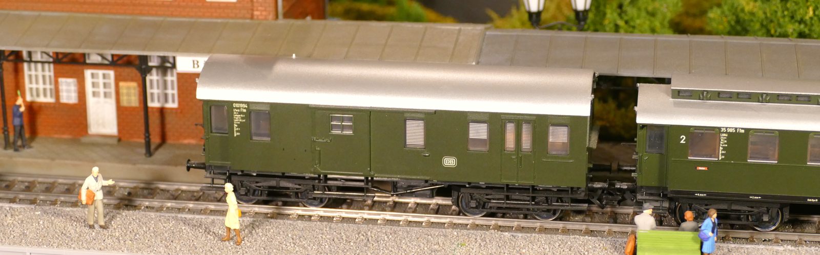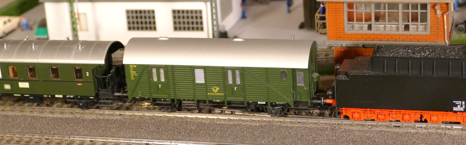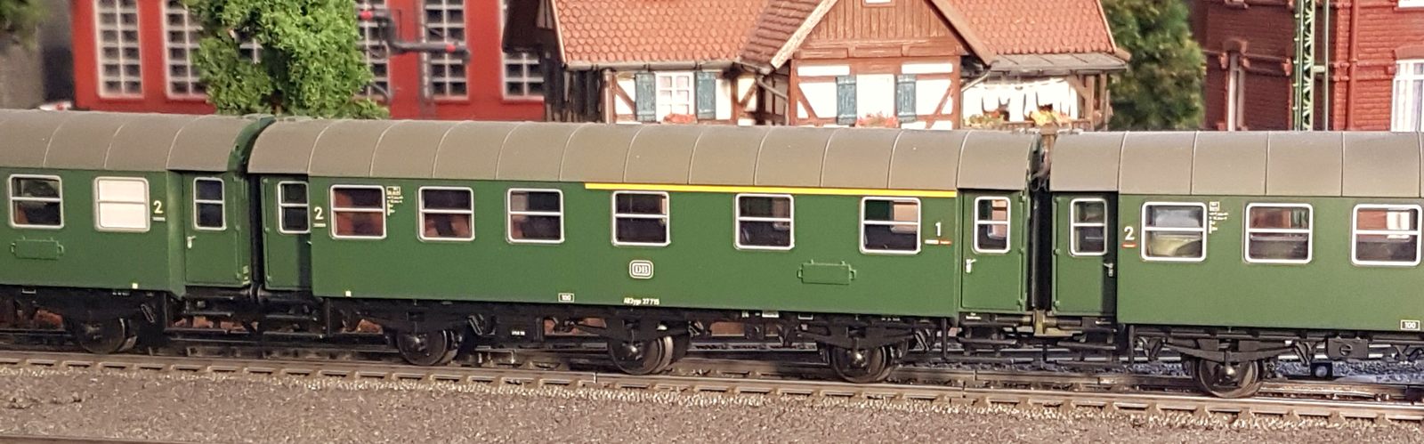 Damals, in den 1950er bis 1970er Jahren gab es geradezu unzählige unterschiedliche Personenwagentypen für den Nahverkehr. Zweiachser, Dreiachser und Vierachser waren im Einsatz, fast immer in der Farbe grün. Bis auf die Triebwagen (Diesel, Elektro, auch Akku) wurden alle Züge von Lokomotiven gezogen oder geschoben. Bahninteressierte Personen erfreuten sich an Dampf-, Diesel- und Elektrolokomotiven verschiedenster Baureihen. 1951 betrug der Anteil der Dampflokomotiven bei der DB ca. 95%; hinzu kamen ca. 1% Dieselloks und 4% E-Loks. 1960 hatte sich das Verhältnis zischen den Loktypen schon erheblich zu Ungunsten der Dampftraktionn geändert. Von den ca. 10.300 Lokomotiven und Triebwagen wurden nur noch etwa 75% von Dampf angetrieben. Die Elektrofraktion inkl. Akkutriebwagen erreichte gut 13%, den Rest teilten sich Dieselloks und Dieseltriebwagen. Im Jahre 1970 sah das Verhältnis wie folgt aus: Bei nur noch rund 7.400 Zugfahrzeugen lag Dampf bei ca. 23%, Diesel bei knapp 37% und Elektro bei etwa 40%. Das Ende der Dampflokomotiven war in der Bundesrepublik Deutschland in Sicht. Nicht so bei mir. Ich bespanne meine Züge vorwiegend mit Dampfloks und bilde damit ungefähr die 1950er und frühen 1960er Jahre ab. Wenn meine Züge hauptsächlich von Dampflokomotiven gezogen werden, liegt es an der Situation bei der Deutschen Bundesbahn in der Epoche III (1945 bis rund 1970) und an meiner Vorliebe für die imposanten, lauten, stampfenden schwarzen Lokomotiven und damit einhergehend an der dominierenden Zahl dieses Loktyps in meinen Vitrinen. Mir macht es auch gar nichts aus, eine BR103.1 in dieses Gemenge aufzunehmen und mitfahren zu lassen, wenngleich sie erst zwischen 1970 und 1974 in Dienst gestellt wurden. Sie passt also noch so gerade in die Epoche und ist eine zeitlos schöne Maschine mit gewaltiger Kraft. Aber die läuft ja unter der Rubrik Schnellzüge. Jetzt aber freut euch auf eine ganze Reihe schöner Personenzüge.