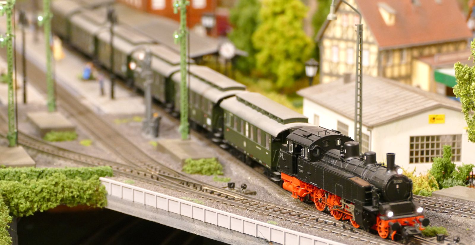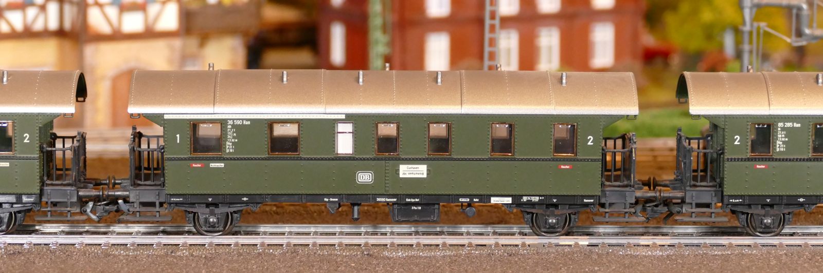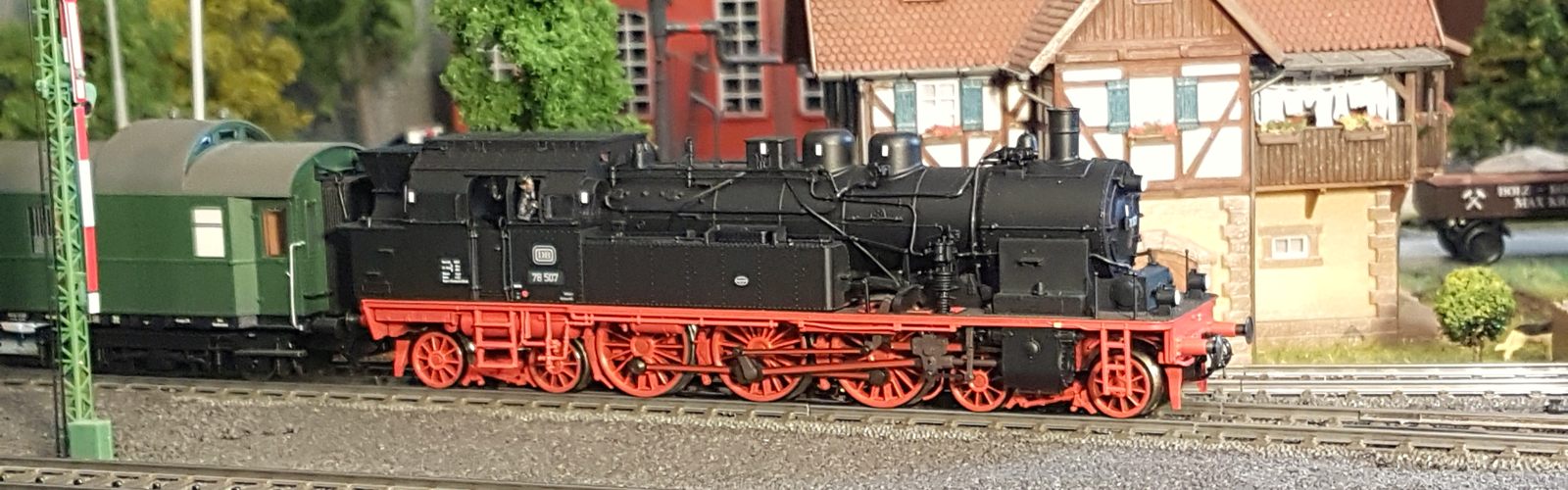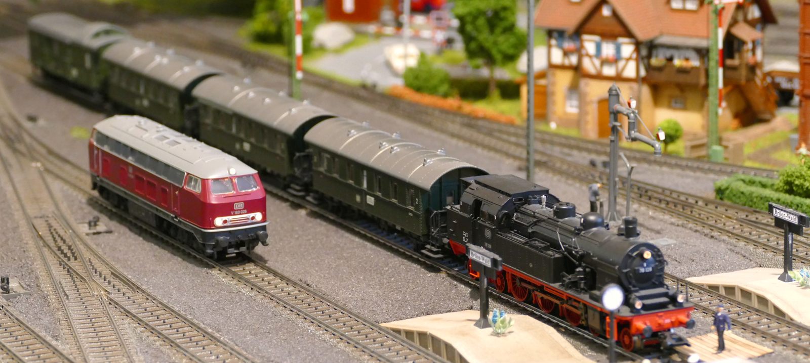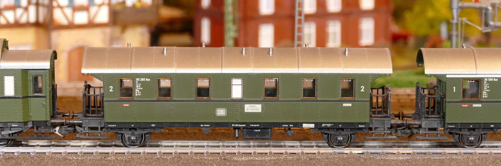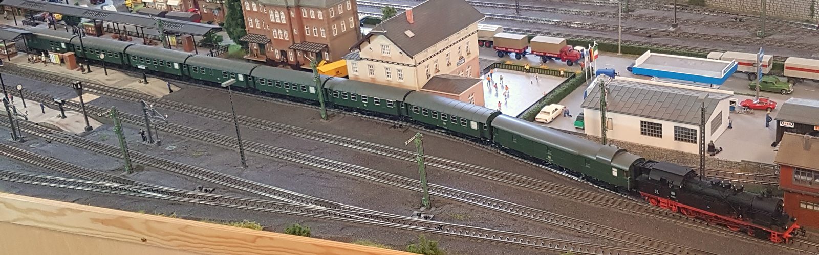 Damals, in den 1950er bis 1970er Jahren gab es geradezu unzählige unterschiedliche Personenwagentypen für den Nahverkehr. Zweiachser, Dreiachser und Vierachser waren im Einsatz, fast immer in der Farbe grün. Bis auf die Triebwagen (Diesel, Elektro, auch Akku) wurden alle Züge von Lokomotiven gezogen oder geschoben. Bahninteressierte Personen erfreuten sich an Dampf-, Diesel- und Elektrolokomotiven verschiedenster Baureihen. 1951 betrug der Anteil der Dampflokomotiven bei der DB ca. 95%; hinzu kamen ca. 1% Dieselloks und 4% E-Loks. 1960 hatte sich das Verhältnis zischen den Loktypen schon erheblich zu Ungunsten der Dampftraktionn geändert. Von den ca. 10.300 Lokomotiven und Triebwagen wurden nur noch etwa 75% von Dampf angetrieben. Die Elektrofraktion inkl. Akkutriebwagen erreichte gut 13%, den Rest teilten sich Dieselloks und Dieseltriebwagen. Im Jahre 1970 sah das Verhältnis wie folgt aus: Bei nur noch rund 7.400 Zugfahrzeugen lag Dampf bei ca. 23%, Diesel bei knapp 37% und Elektro bei etwa 40%. Das Ende der Dampflokomotiven war in der Bundesrepublik Deutschland in Sicht. Nicht so bei mir. Ich bespanne meine Züge vorwiegend mit Dampfloks und bilde damit ungefähr die 1950er und frühen 1960er Jahre ab. Wenn meine Züge hauptsächlich von Dampflokomotiven gezogen werden, liegt es an der Situation bei der Deutschen Bundesbahn in der Epoche III (1945 bis rund 1970) und an meiner Vorliebe für die imposanten, lauten, stampfenden schwarzen Lokomotiven und damit einhergehend an der dominierenden Zahl dieses Loktyps in meinen Vitrinen. Mir macht es auch gar nichts aus, eine BR103.1 in dieses Gemenge aufzunehmen und mitfahren zu lassen, wenngleich sie erst zwischen 1970 und 1974 in Dienst gestellt wurden. Sie passt also noch so gerade in die Epoche und ist eine zeitlos schöne Maschine mit gewaltiger Kraft. Aber die läuft ja unter der Rubrik Schnellzüge. Jetzt aber freut euch auf eine ganze Reihe schöner Personenzüge.