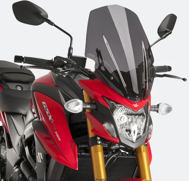 Bemerkung: sicher, komfortabel, effizient; etwas schwer. Motor ab 7.000rpm zäh. Die Firma Hornig bietet eine gute Tourenscheibe für 115 Euro an (s. rechts; hier in rauchgrau), die den Winddruck bei langen Strecken abhält.